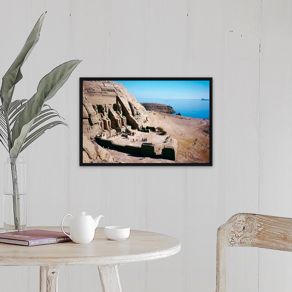 "Egyptian building carved into hillside" Black Float Frame Canvas Art