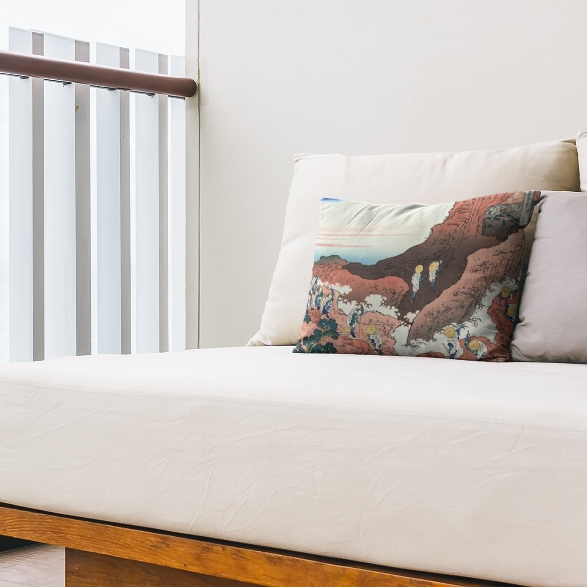 Climbing on Mt. Fuji Outdoor Lumbar Pillow
