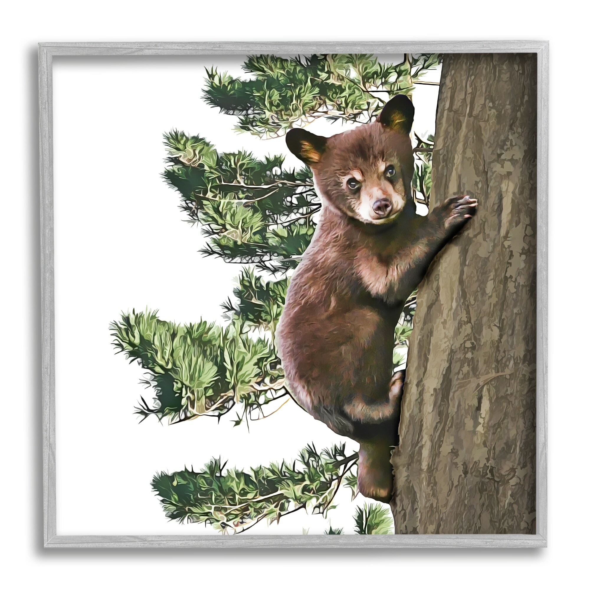 Stupell Industries Bear Cub Climbing Tree Nature Framed Giclee Art by Kim Curinga