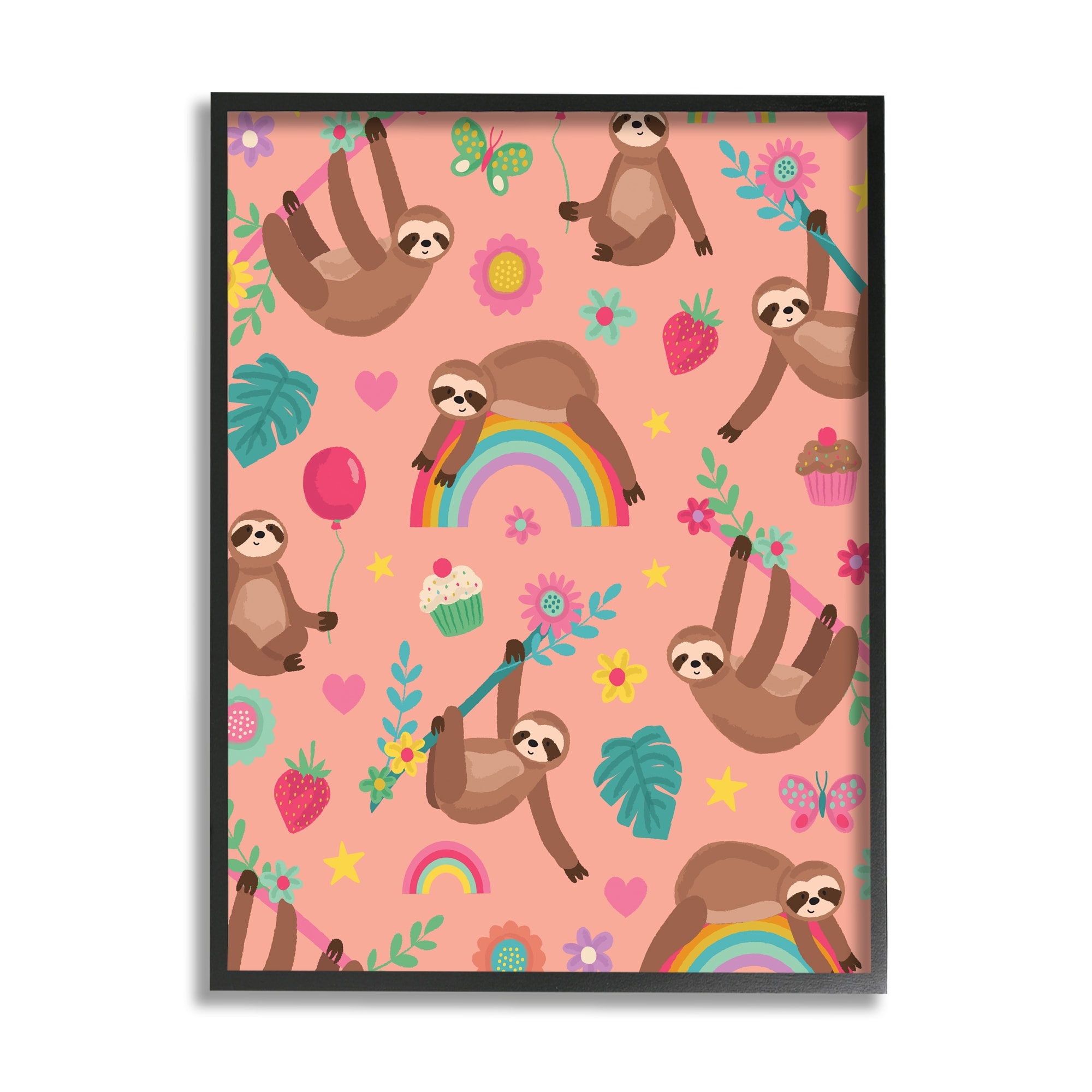 Stupell Industries Sloths Climbing Botanical Branches Whimsical Floral Pattern Framed Wall Art, Design by Lisa Perry Whitebutton