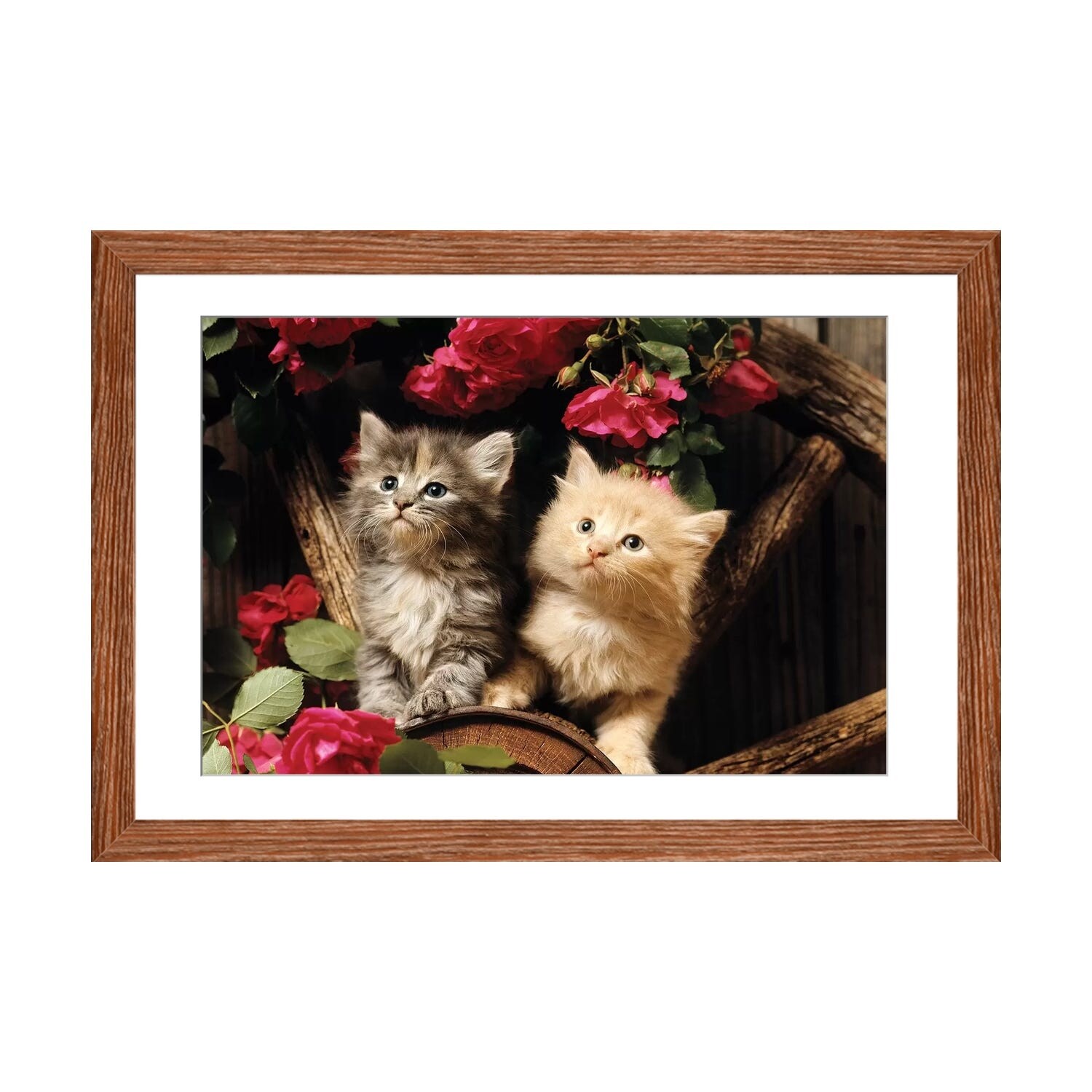 iCanvas "1980s Two Kittens Climbing on Wagon Wheel Amid Wild Red Roses" by Vintage Images
