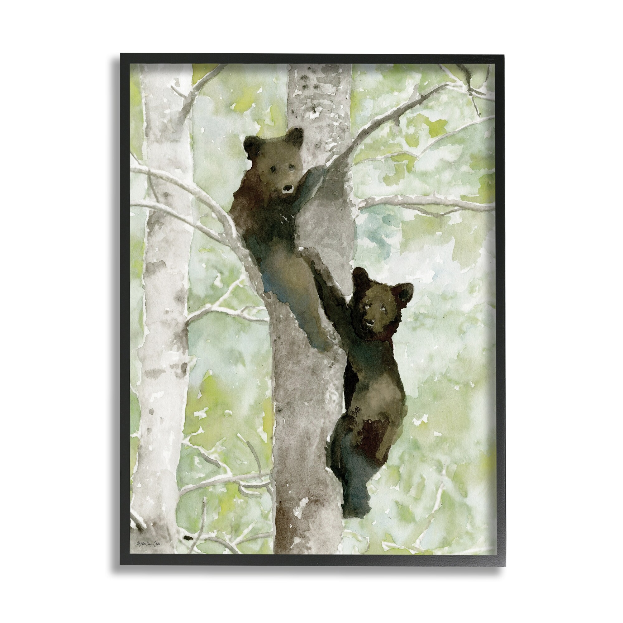 Stupell Industries Bear Cubs Climbing Tree Nature Framed Giclee Art by Stellar Design Studio