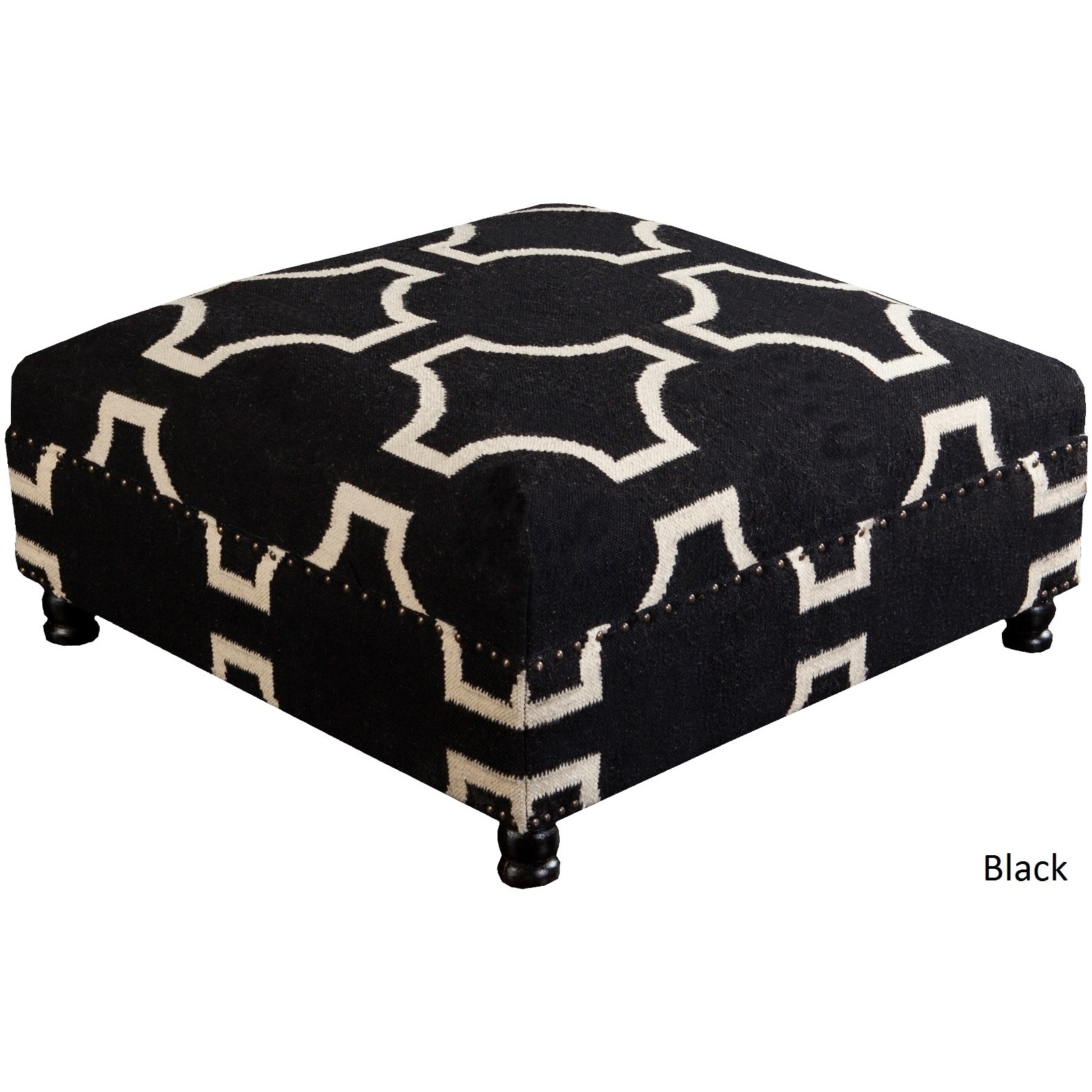 Living Room Cocktail Ottoman Accent Studding Trim Wooden Legs