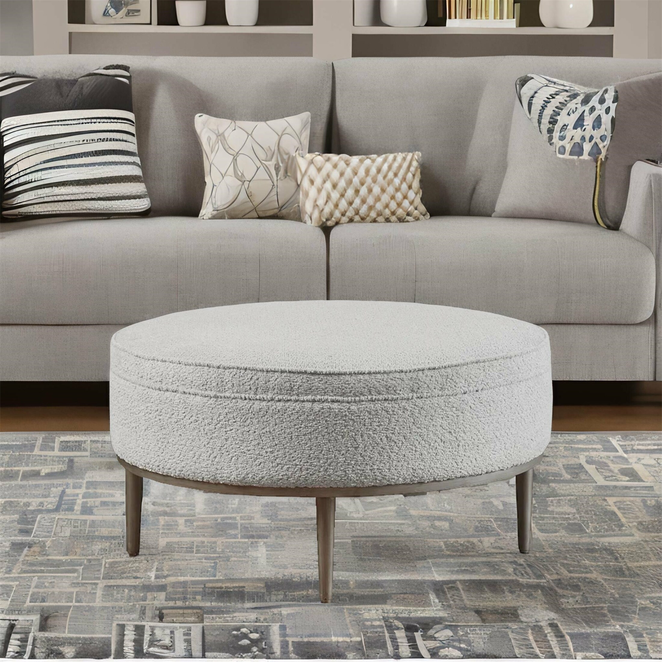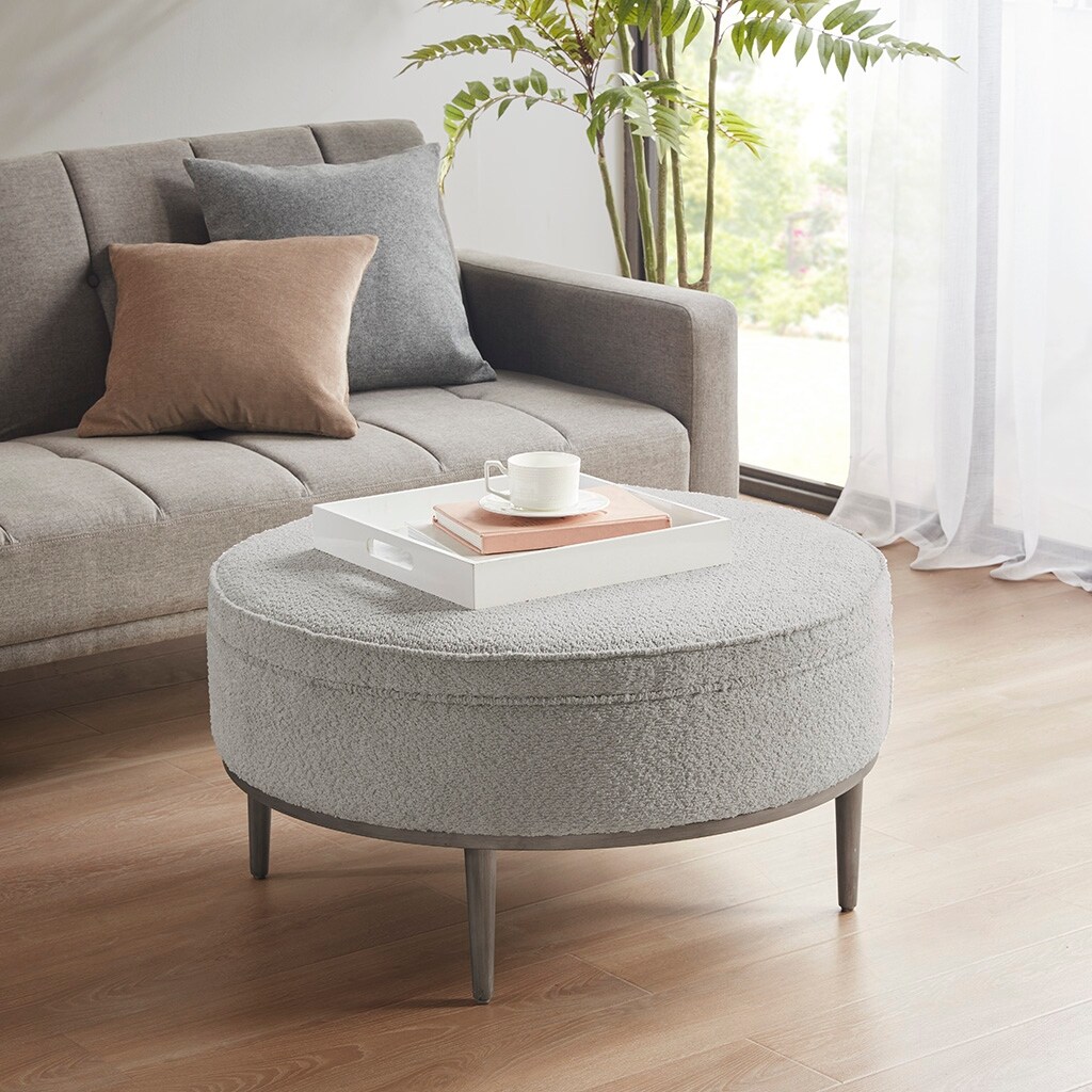 34" Inch Upholstered Round Cocktail Ottoman with Metal Base