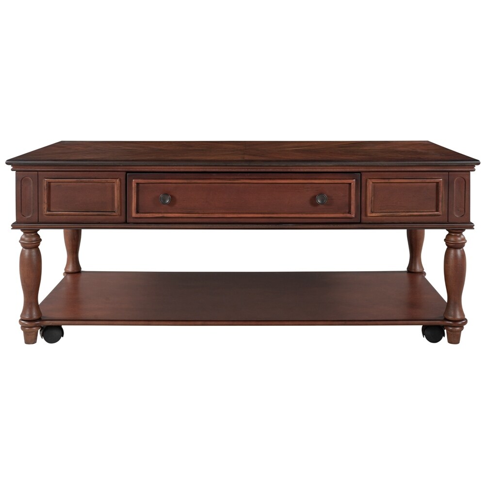 Retro Cocktail Table with Drawers, Movable Coffee Table with Caster Wheels for Living Room