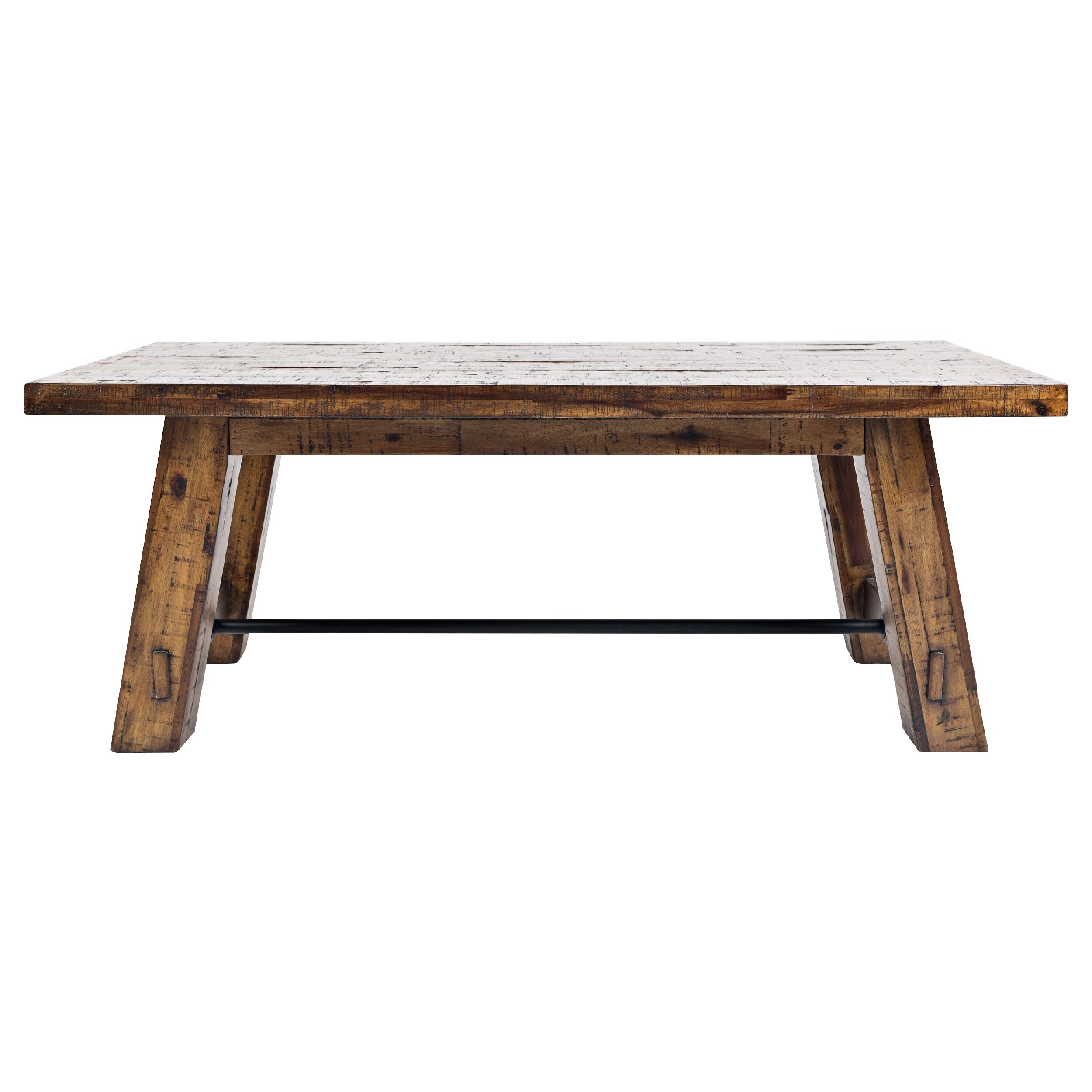 Cocktail Table with Plank Style and Trestle Base, Rustic Brown