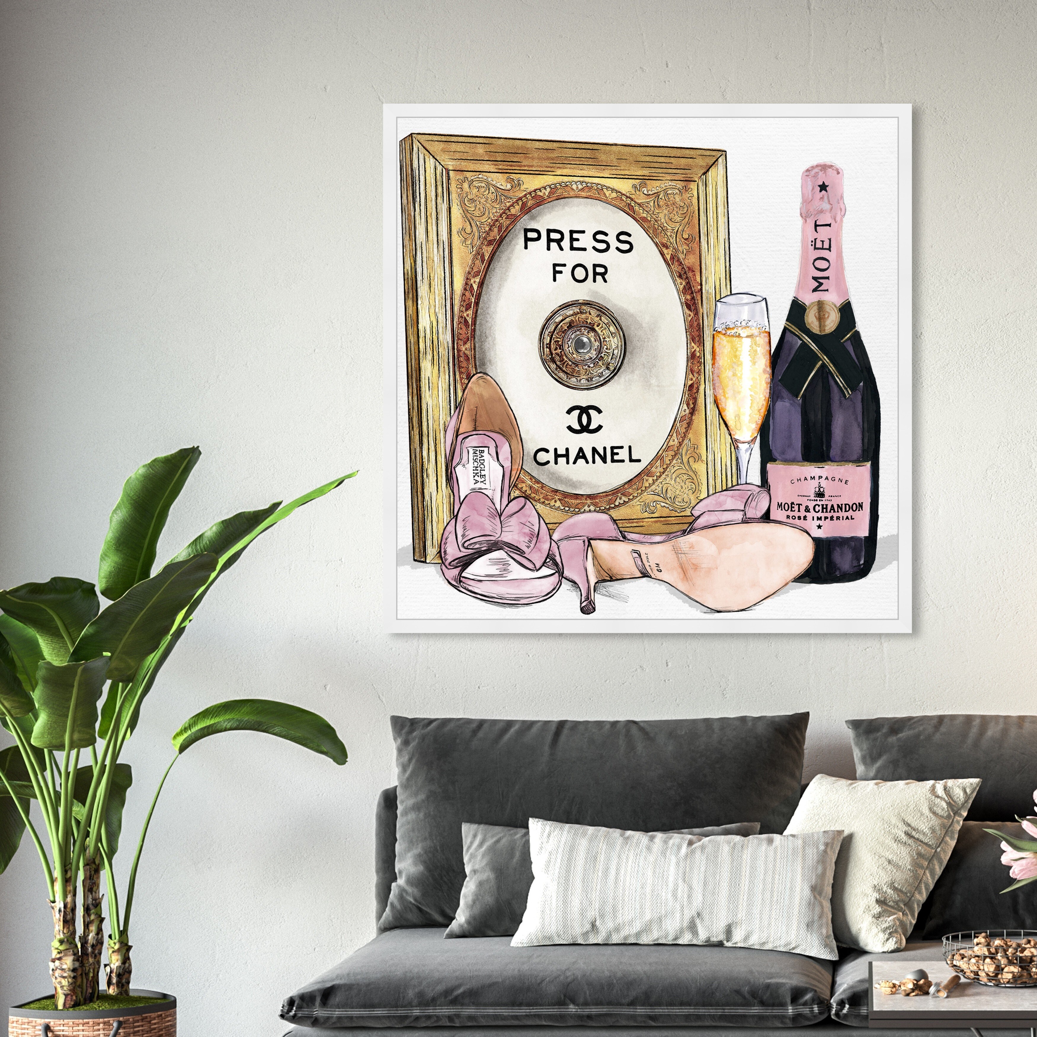 Oliver Gal 'Champagne Cocktail' Fashion and Glam Wall Art Framed Canvas Print Road Signs - Gold, Pink