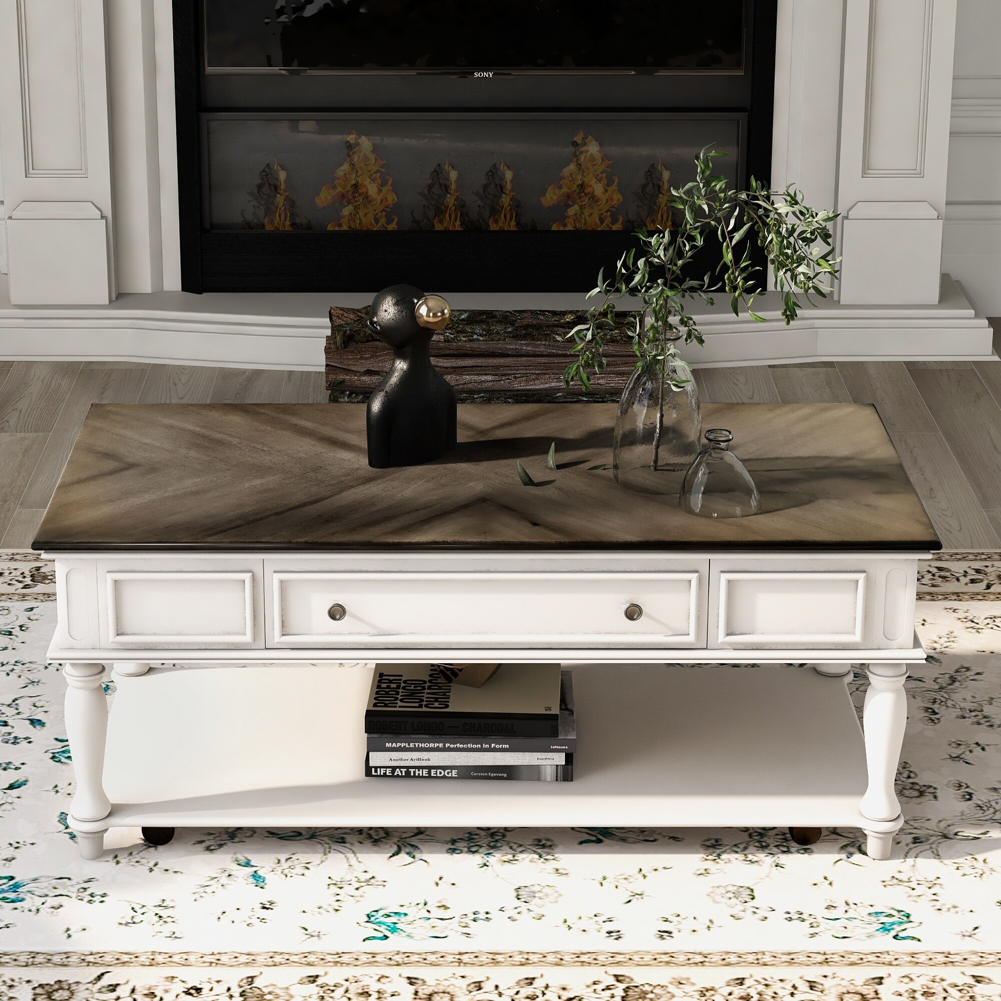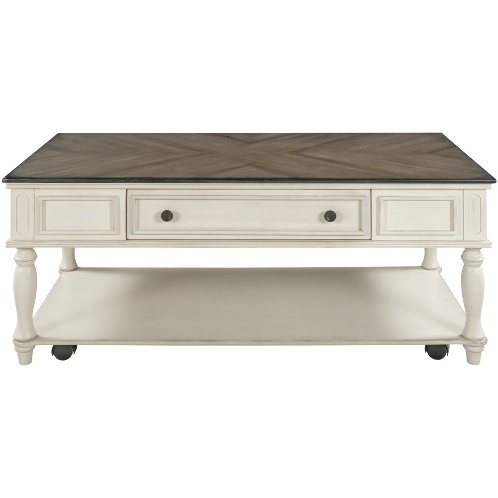 Two Tone Retro Cocktail Table Coffee Table Easy Assembly Movable with Caster Wheels for Livingroom, Antique White