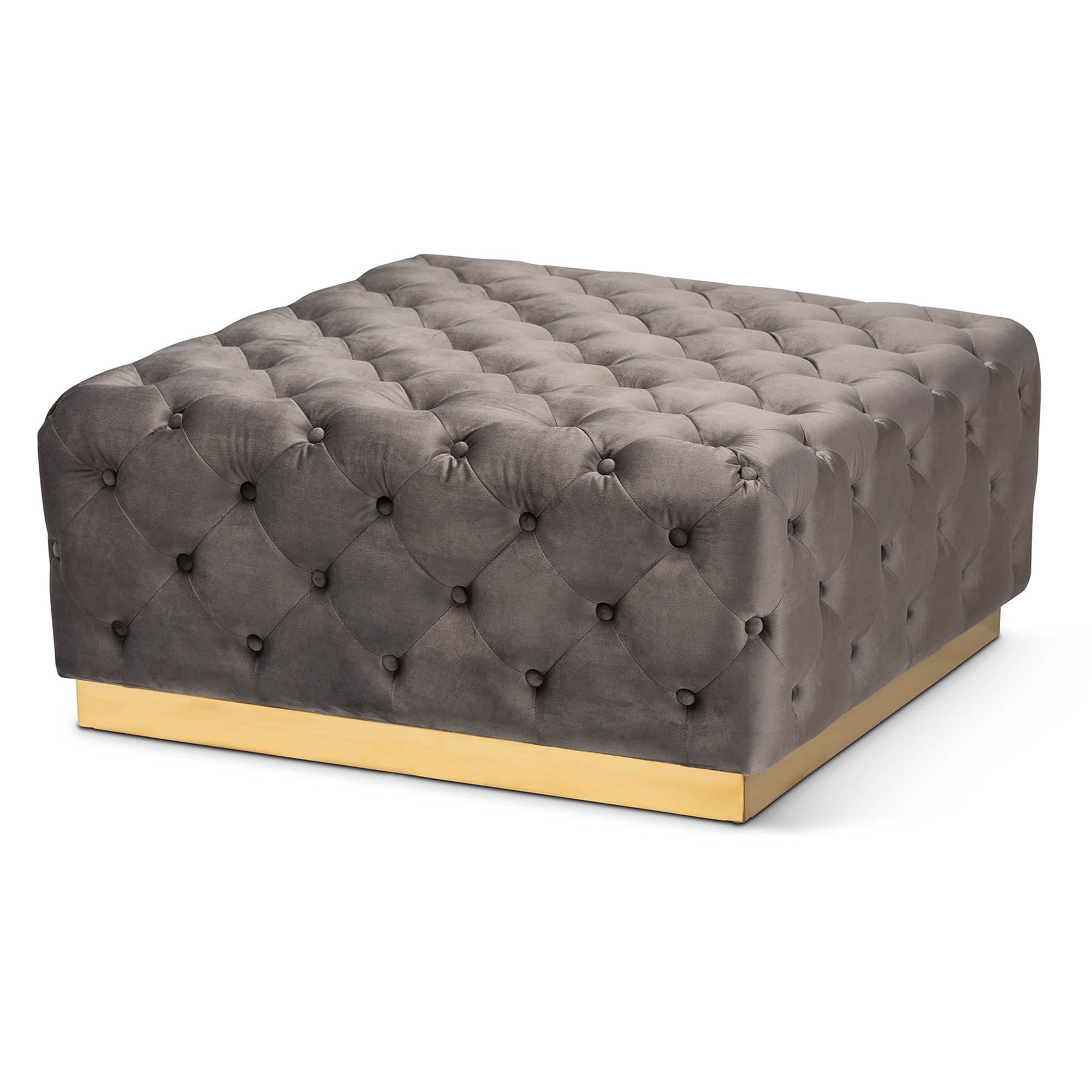Silver Orchid Verene Glam and Luxe Upholstered Square Cocktail Ottoman