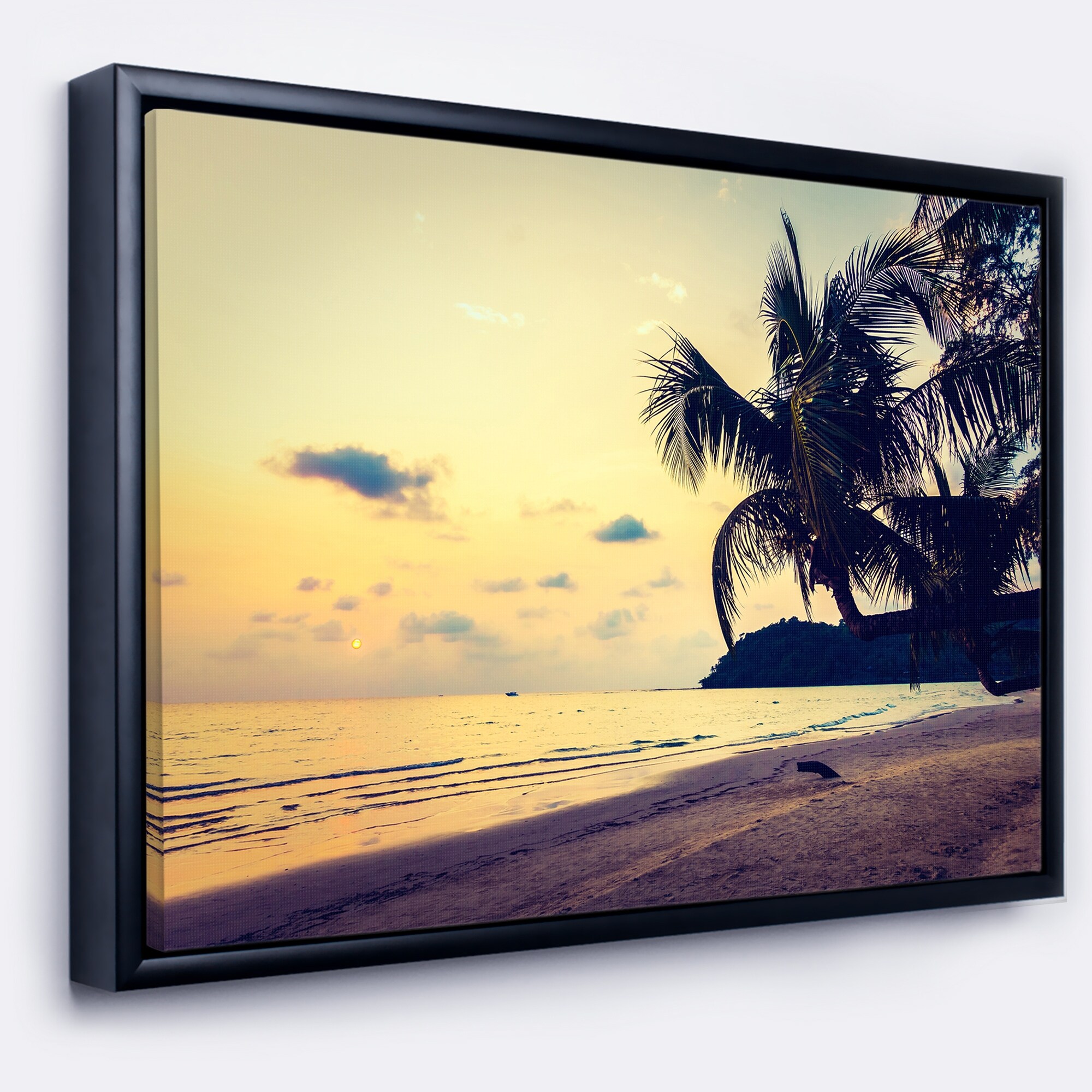 Designart "Silhouette Coconut Tree" Seascape Framed Canvas Art Print