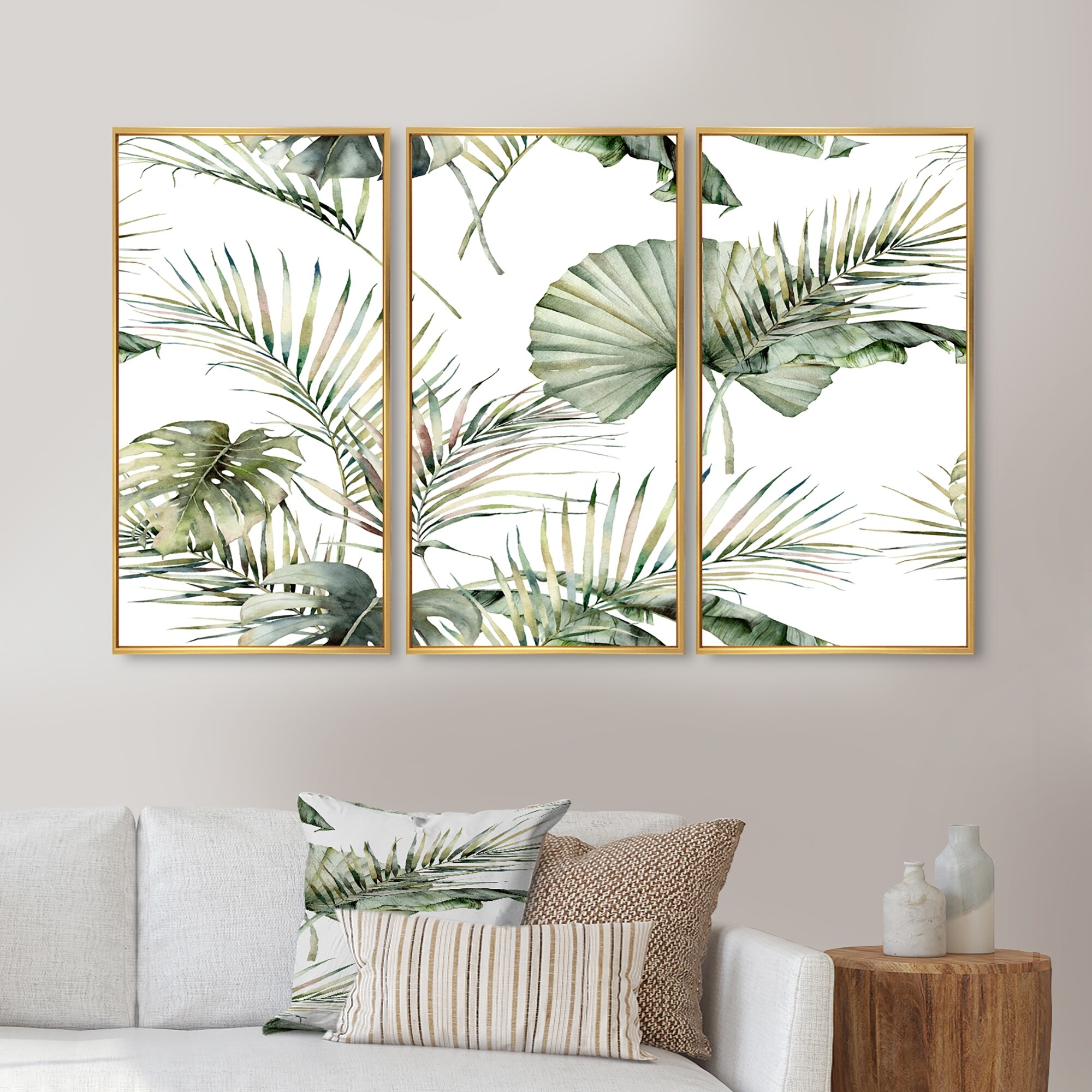 Designart "Tropical S Pattern With Monstera & Coconut Leaves" Traditional Framed Art Set of 3 - 4 Colors of Frames