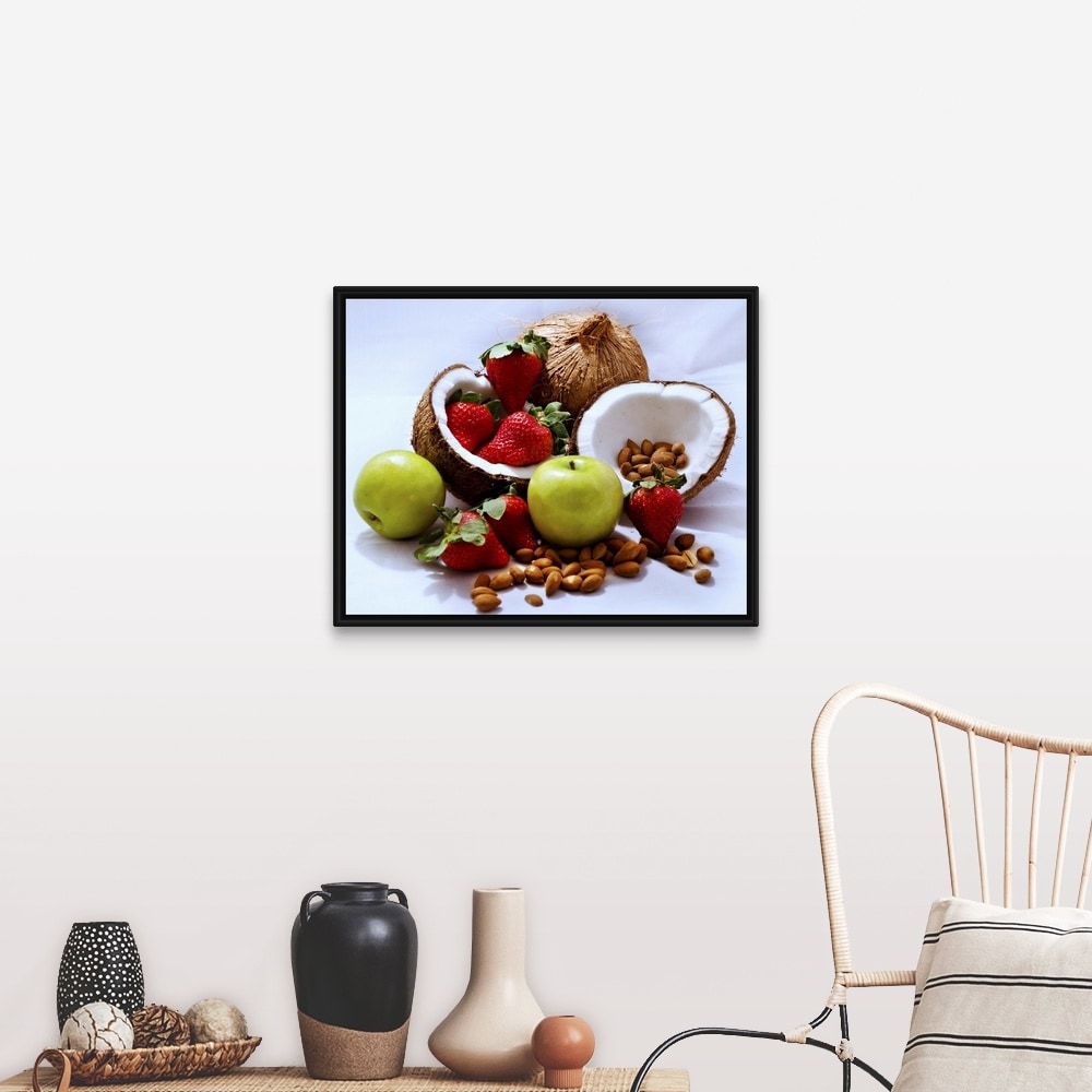 iCanvas "Coconuts On Burgundy" by Jania Sharipzhanova Framed