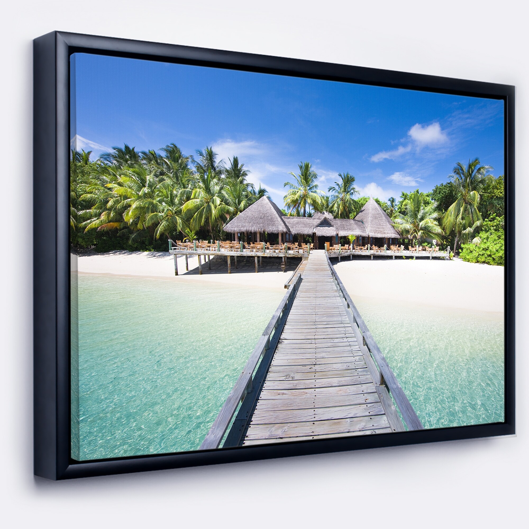Designart "Beach with Coconut Palm Trees" Landscape Photo Framed Canvas Art