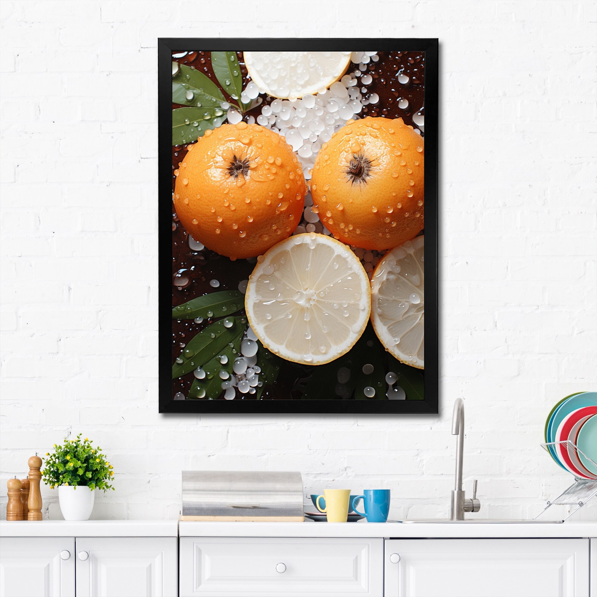Designart "Fruit Tropical Coconut Pointillism II" Fruits Framed Canvas Art Print