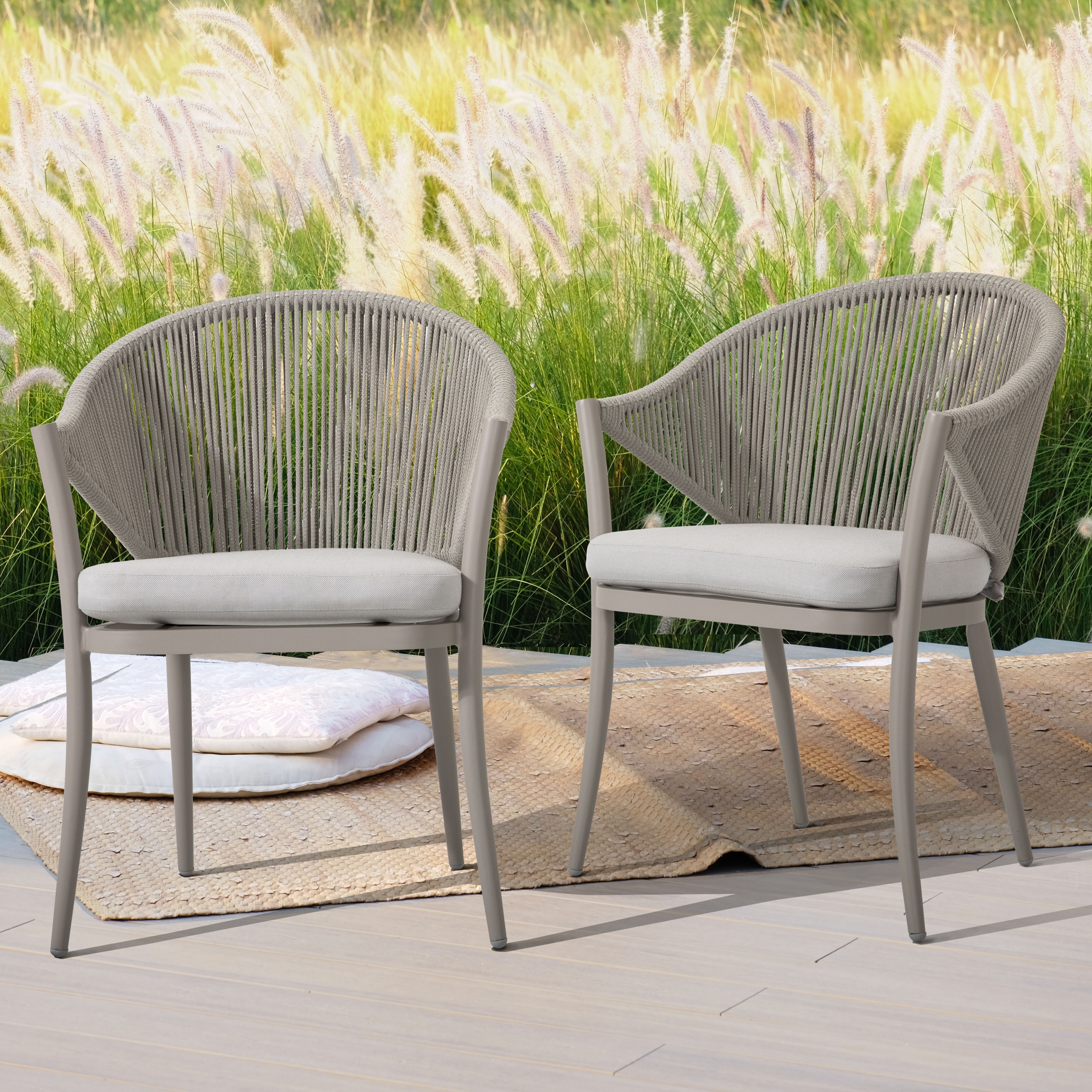 Outdoor 2-Piece Woven Rope Conversation Chair Set, Aluminum, Gray