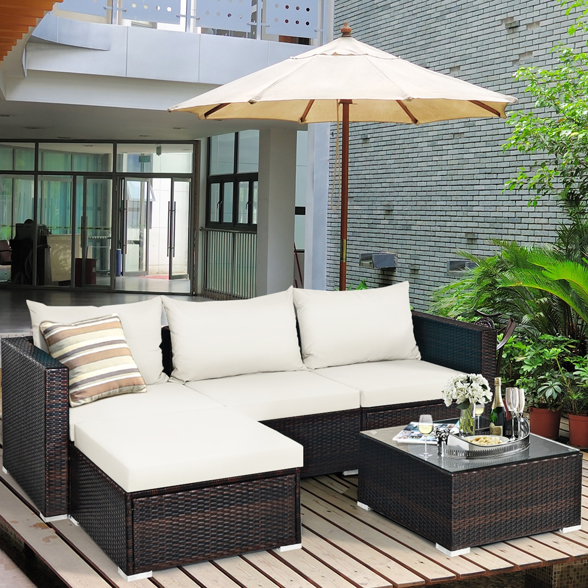 Costway 5PCS Outdoor Patio Rattan Furniture Set Sectional Conversation - See Description