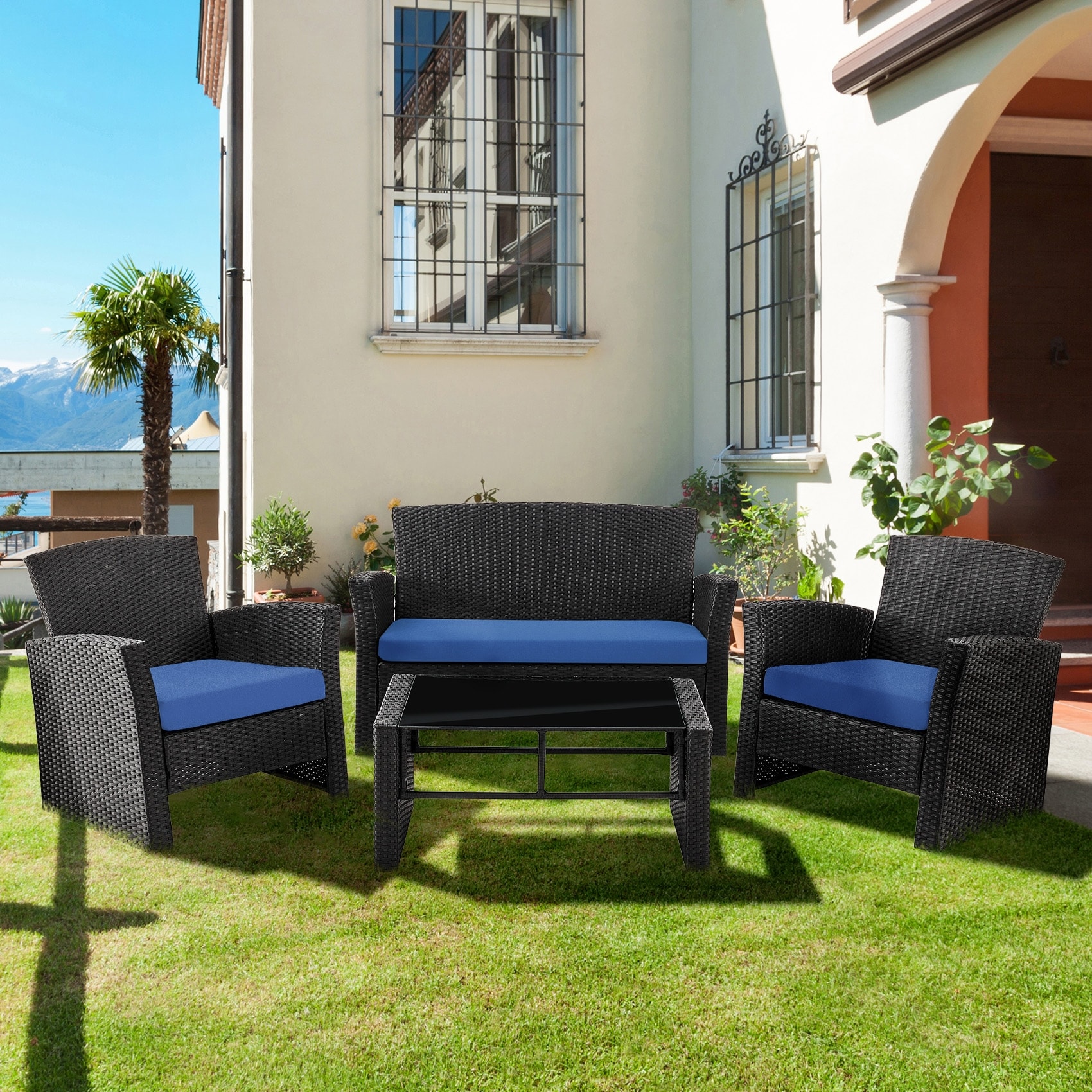 Gymax 4PCS Rattan Patio Conversation Set Outdoor Furniture Set w/ Navy
