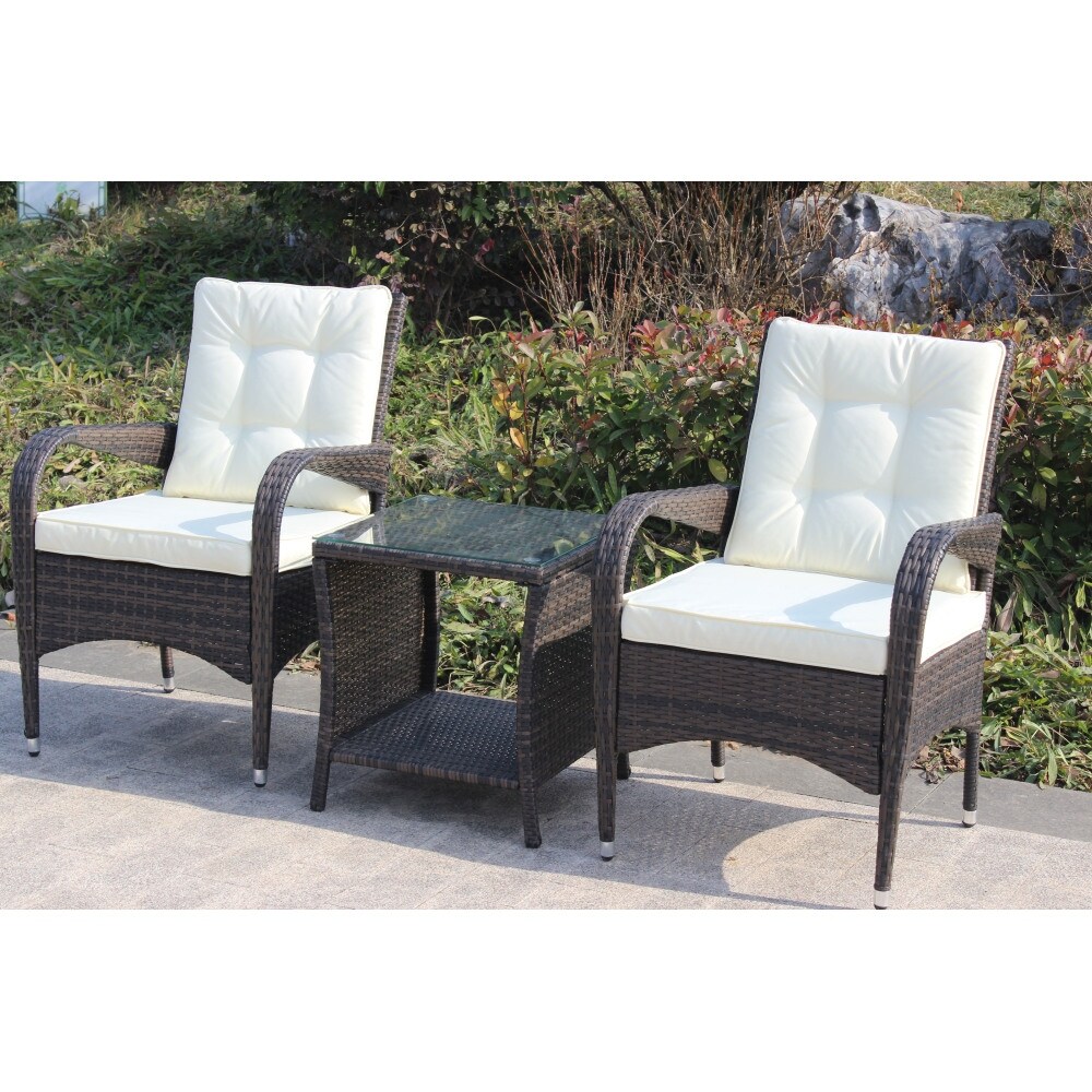 3 PCS Outdoor Rattan Conversation Set Patio Garden Chair Coffee Table