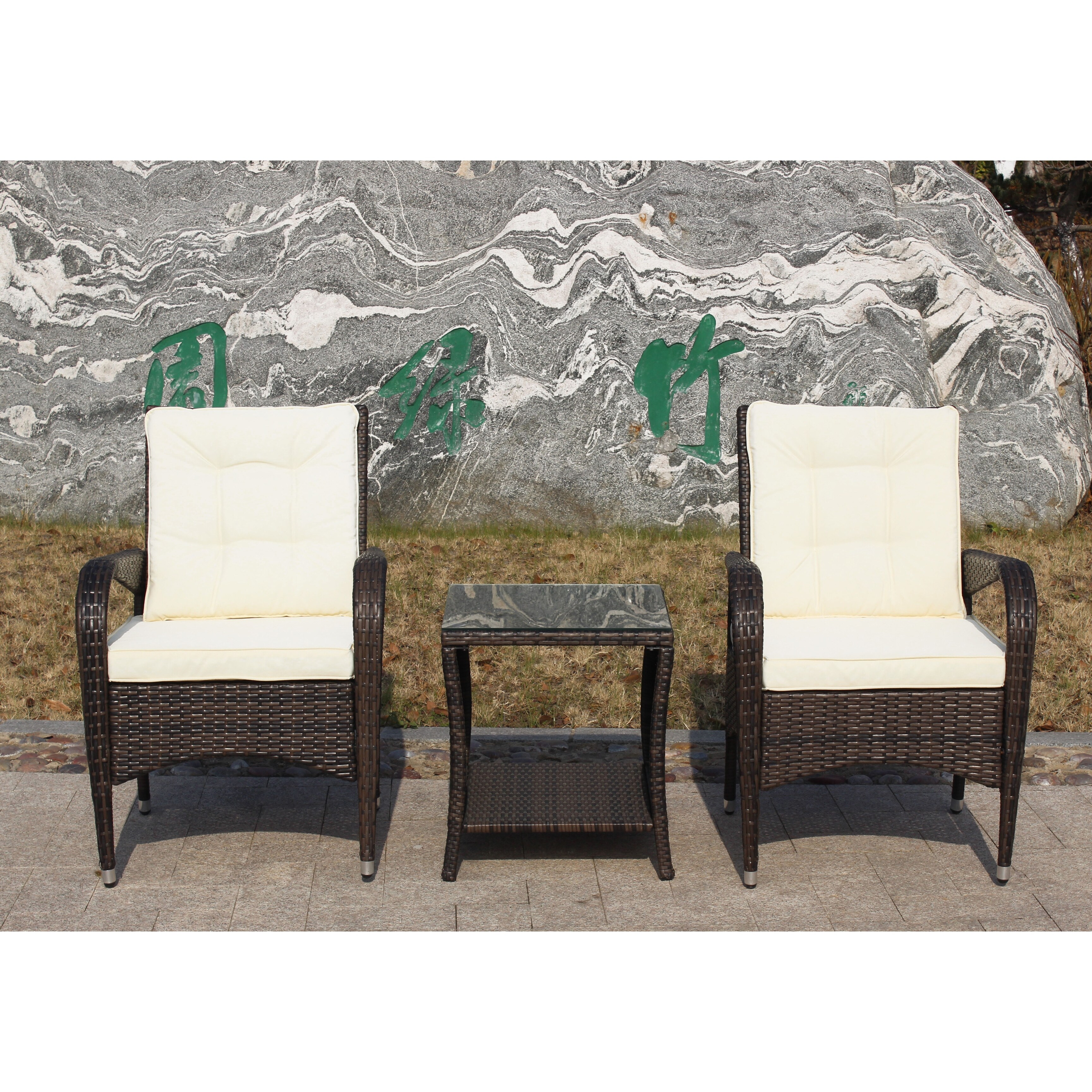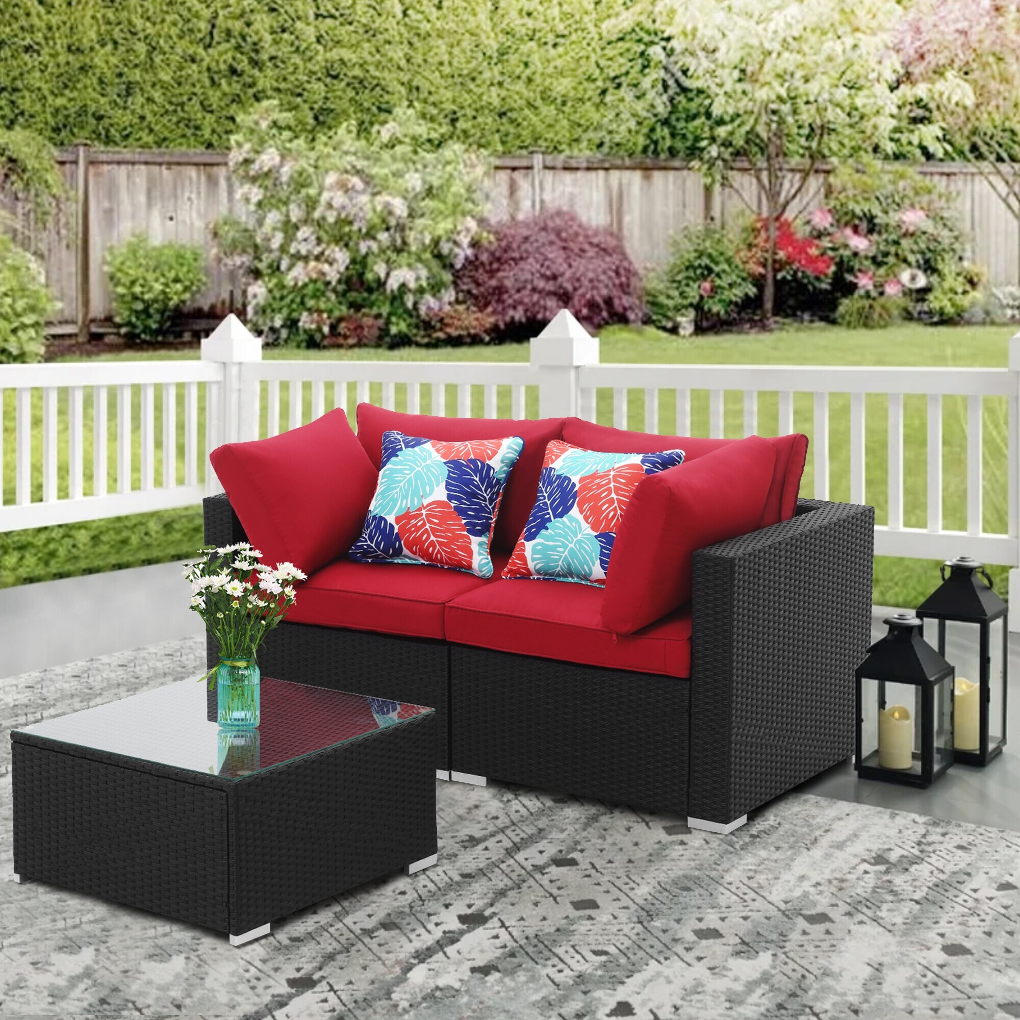 3PCS Patio Conversation Rattan Furniture Set with Coffee Table and Cushions