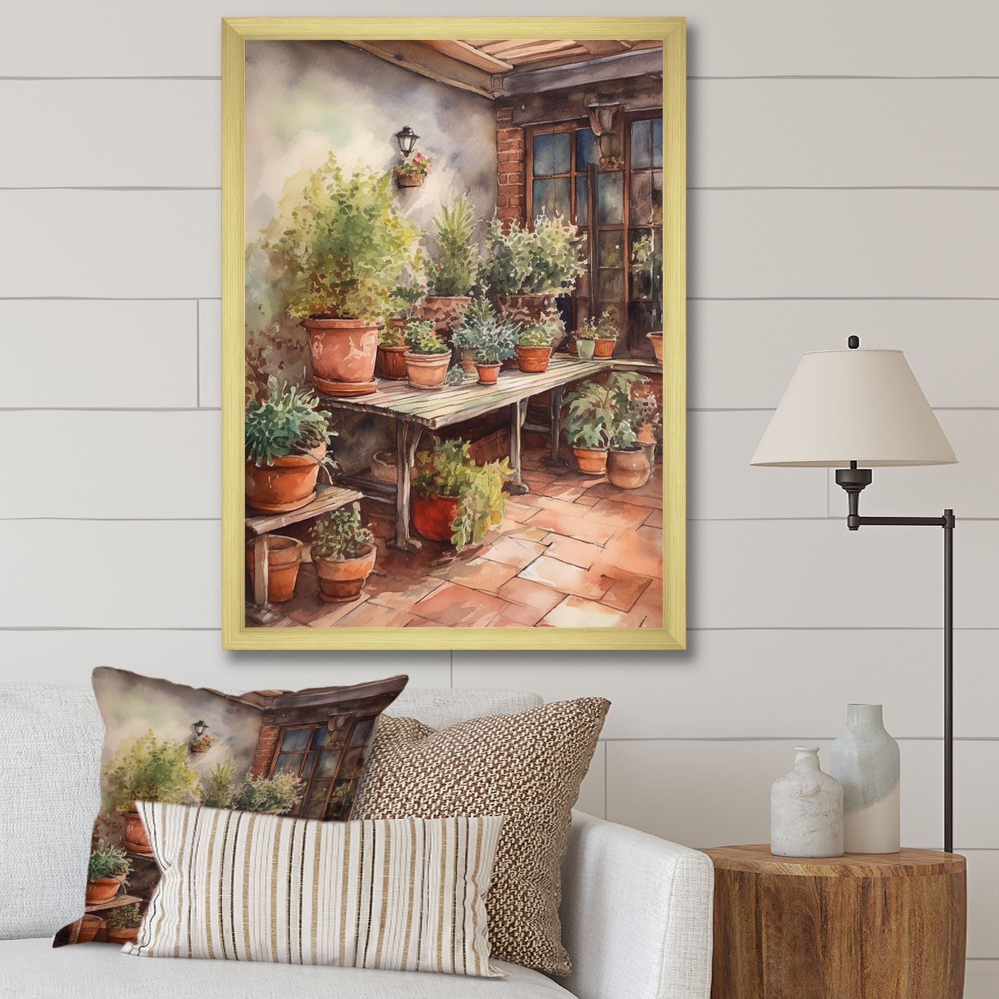 Designart "Cottage Balcony Garden Iv" Cottage Landscape Framed Canvas Prints