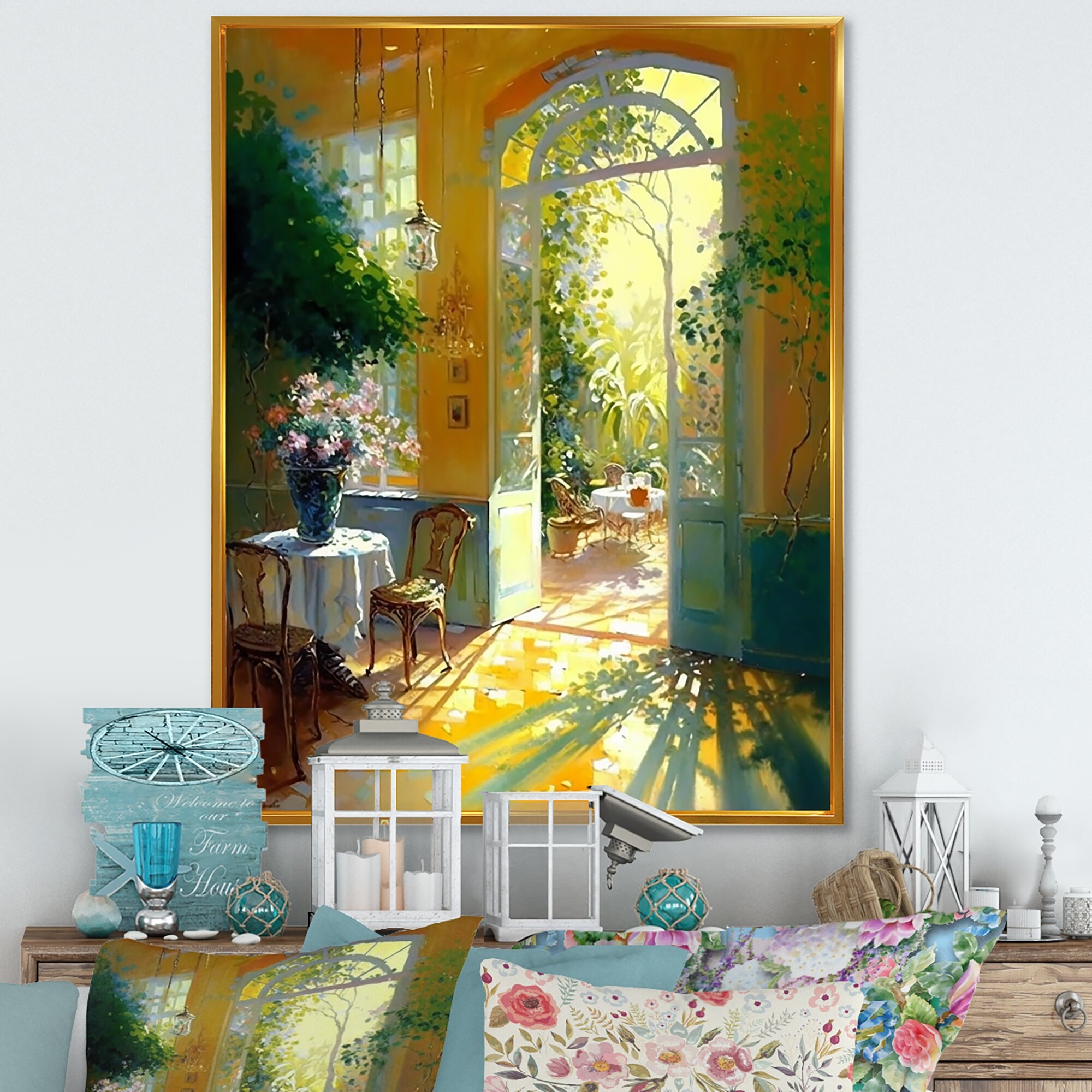 Designart "Sunlight Bliss At the Cottage III" Lake House Cottage Framed Canvas Wall Art Print