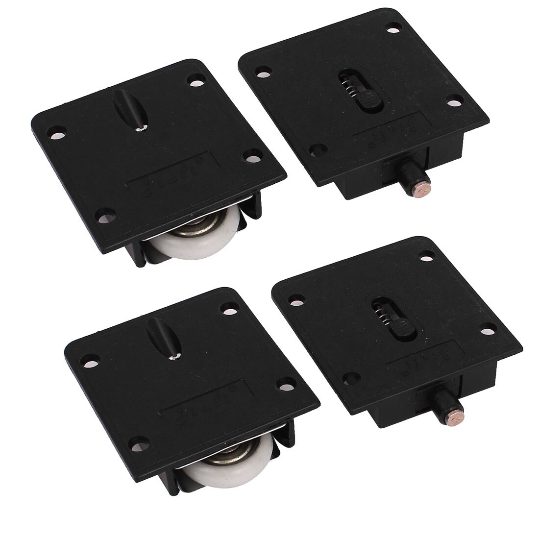 Black Furniture Cabinet Cupboard Wardrobe Sliding Door Roller 2 Sets - Black, Silver Tone