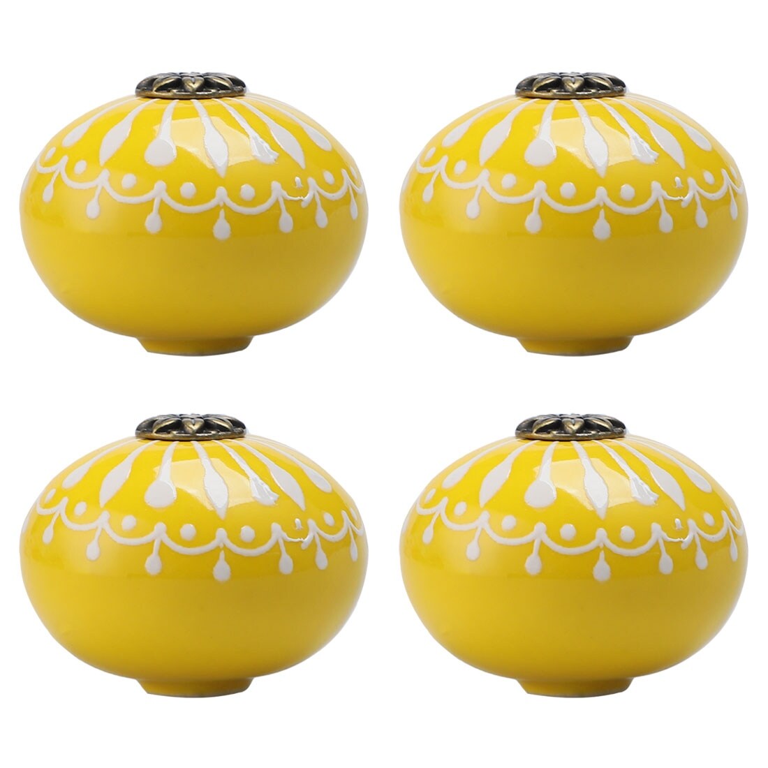 Ceramic Knob Drawer Pull Handle Cupboard Wardrobe Dresser Knobs 4pcs - Yellow
