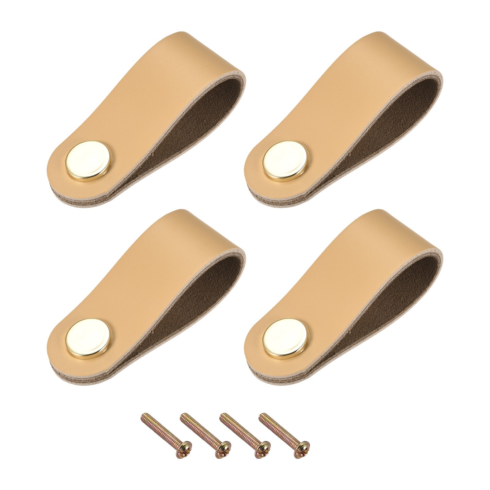 Drawer Knobs, 2.56" 4Pcs Leather Dresser Handles Door Pulls Cupboard Pull, Beige