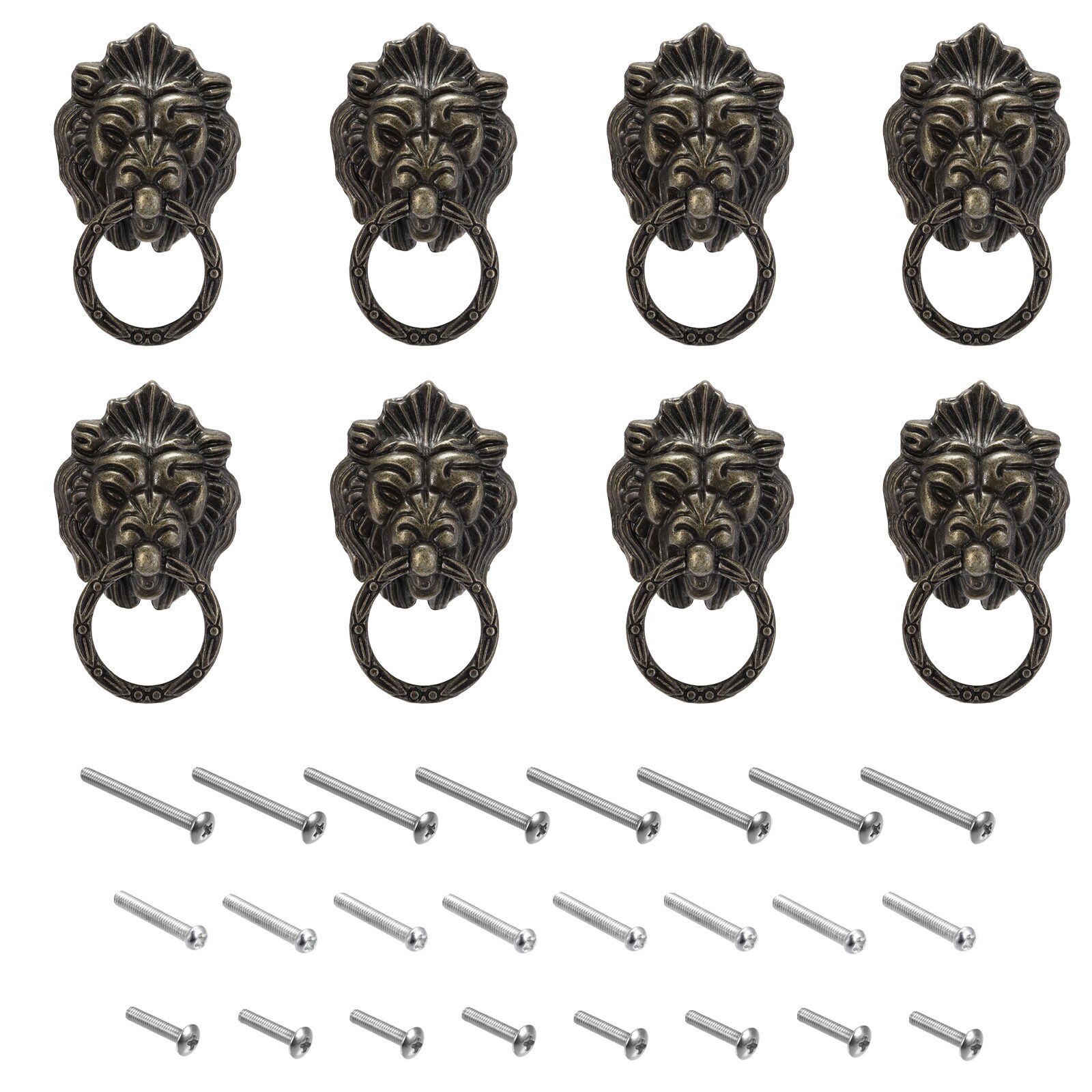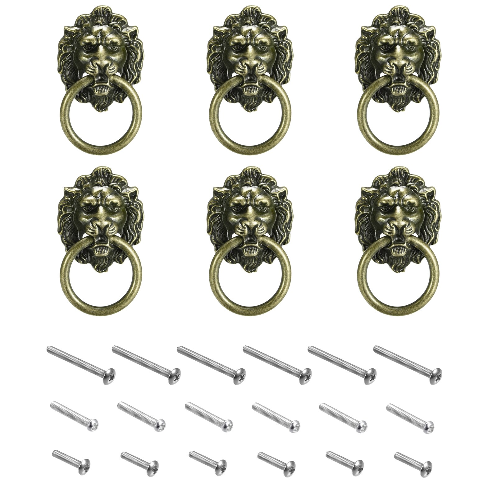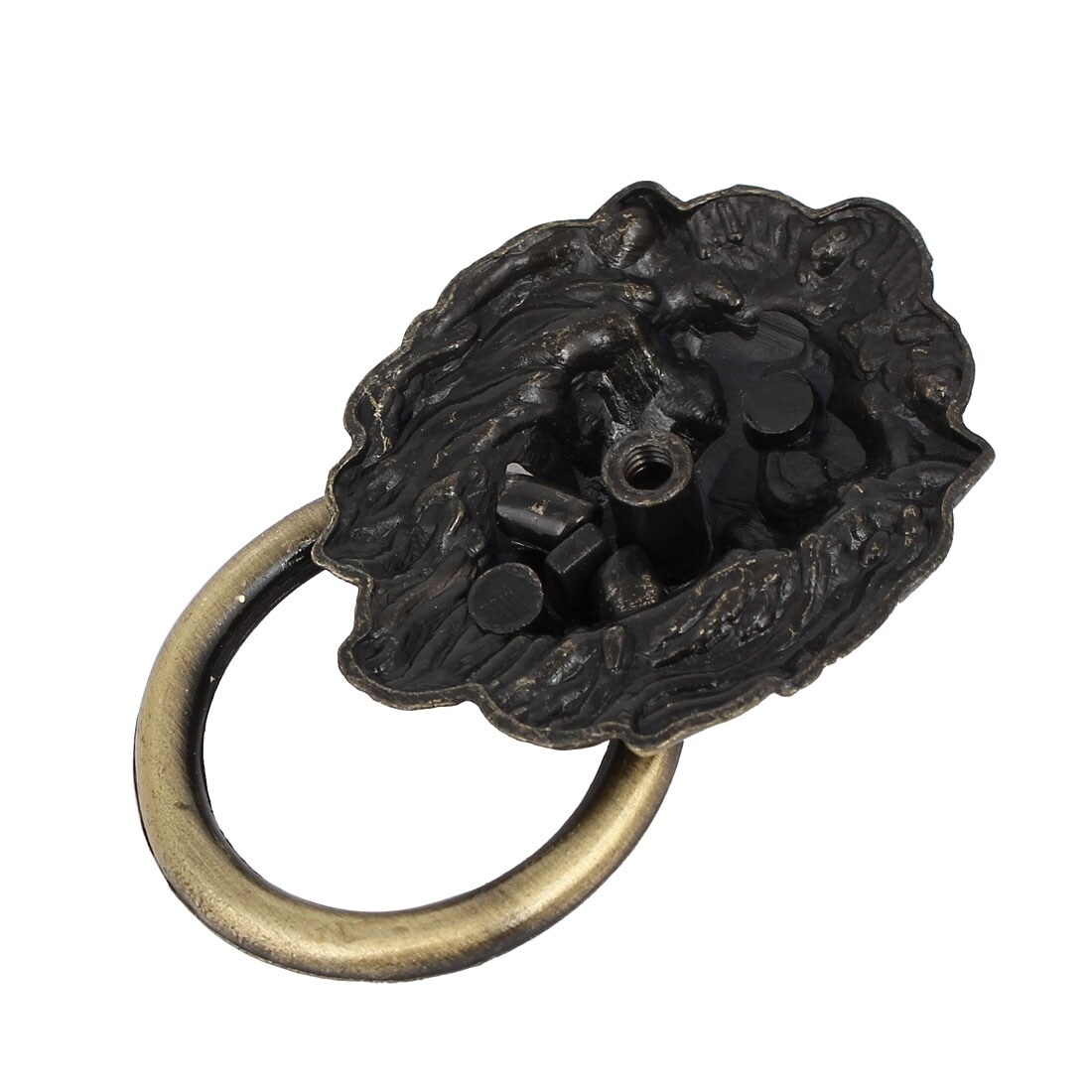 Cupboard Drawer Cabinet Metal Lion Head Ring Pull Handles Grips 67mmx41mm 4pcs - Bronze Tone