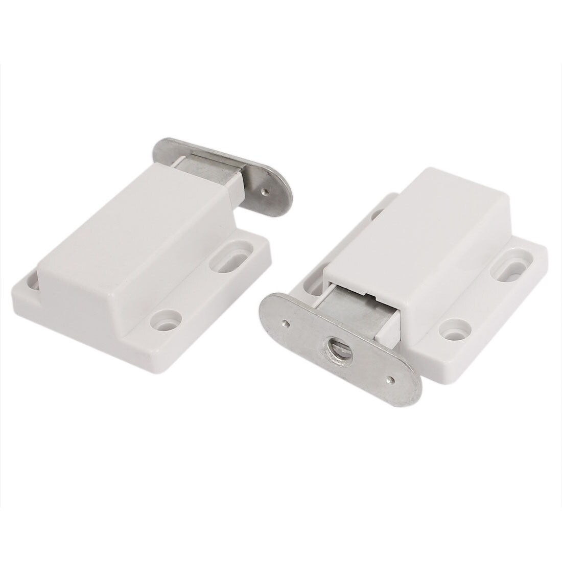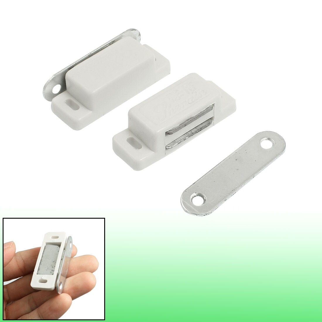 Pair Cupboard Cabinet Doors Plastic Magnetic Catch Latch White 1.8" - White, Silver Tone