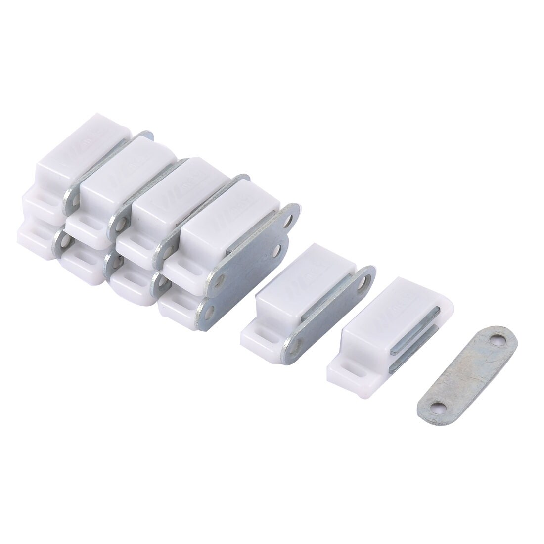Door Wardrobe Cupboard Cabinet Single Magnetic Latch Catch White 10pcs - White, Silver Tone