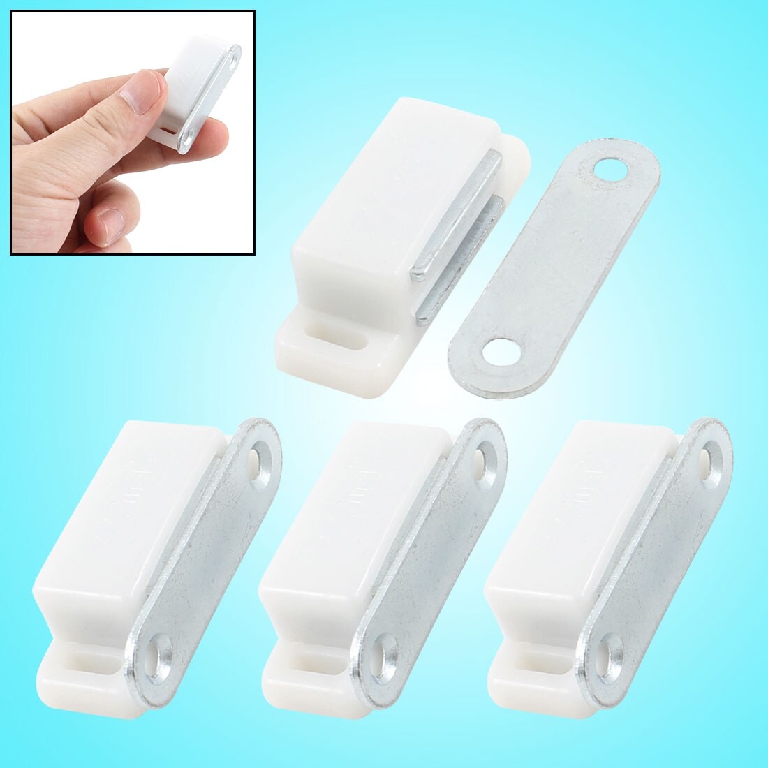 4 Pcs White Plastic Case Metal Plate Cupboard Door Magnetic Catch 1.8" - White, Silver Tone