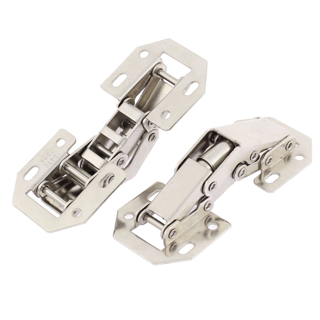 2 Pcs Silver Tone Metal 90 Degree Open Concealed Hinges Easy Mount for Cupboard - Silver Tone