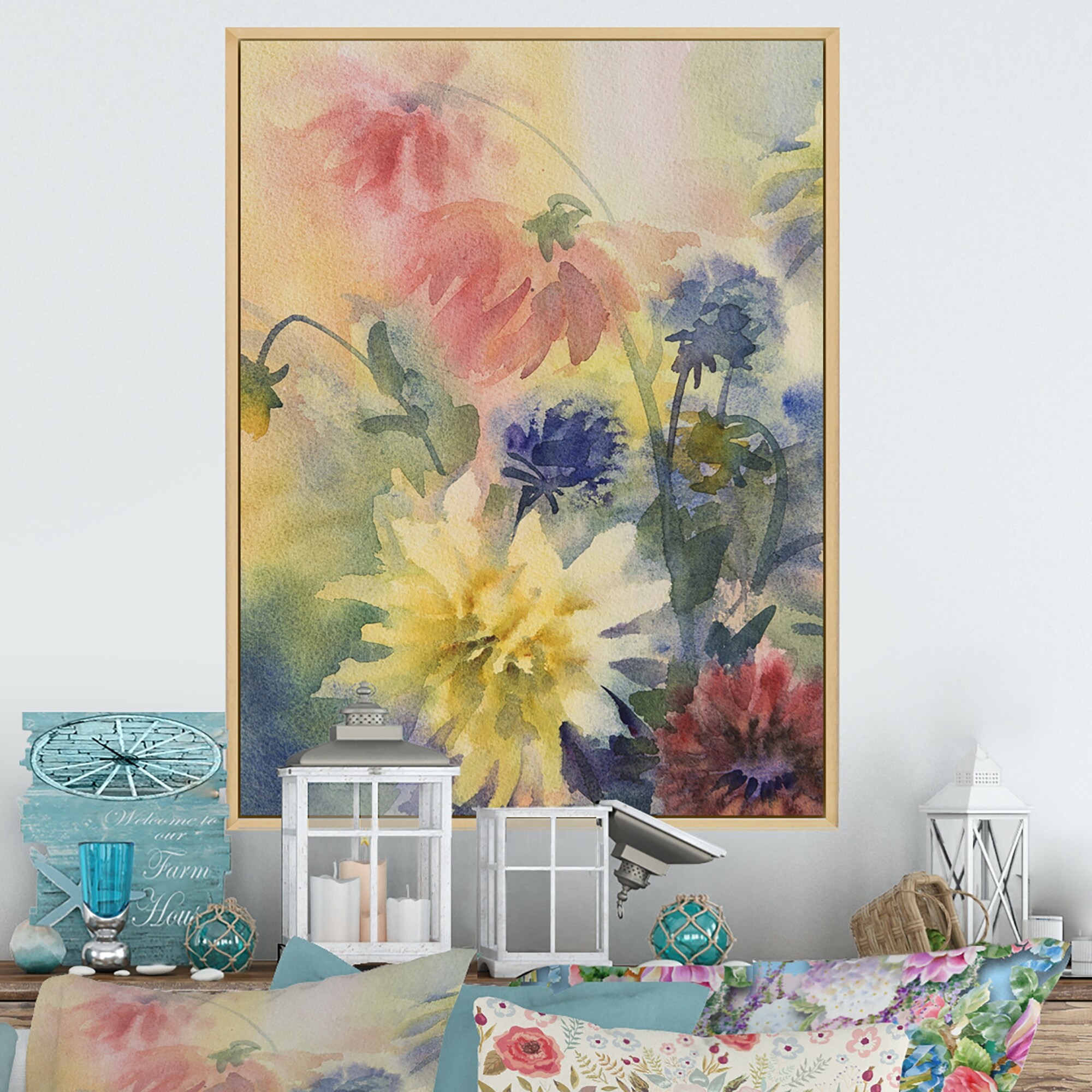 Designart "Grunge Color Dahlias Flowers" Traditional Framed Canvas Wall Art