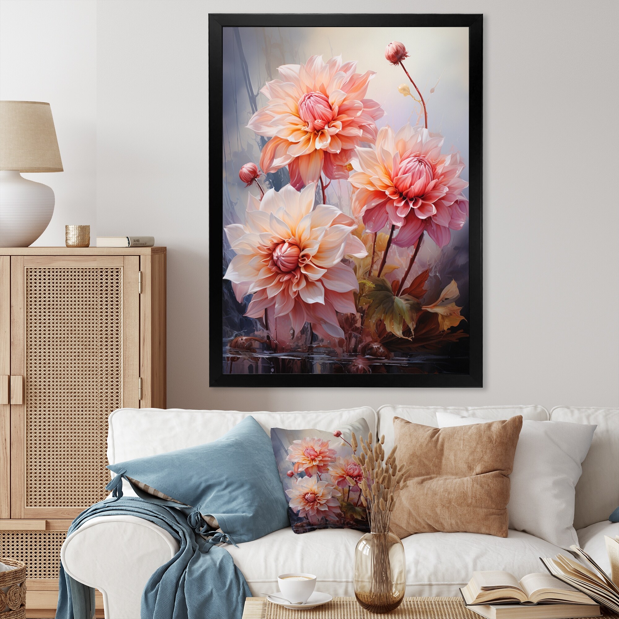 Designart "Pink Dahlia Romantic Impression I" Dahlia Framed Wall Art Prints
