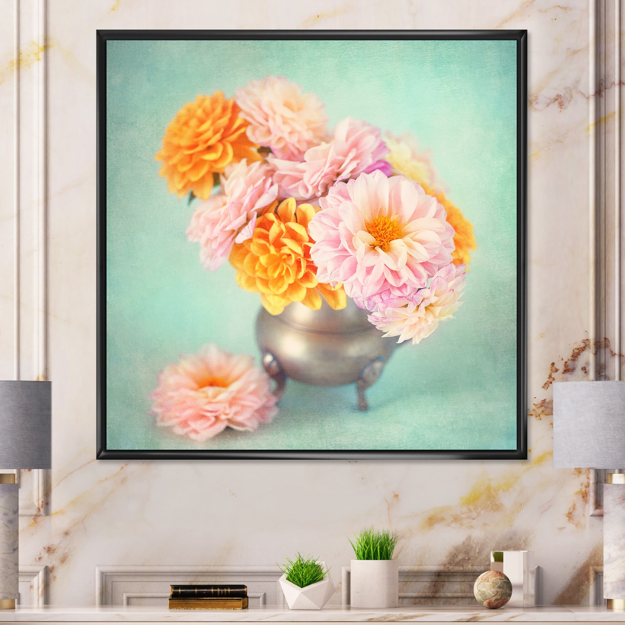 Designart "Vintage Bouquet of Pink And Yellow Dahlias" Traditional Framed Canvas artwork