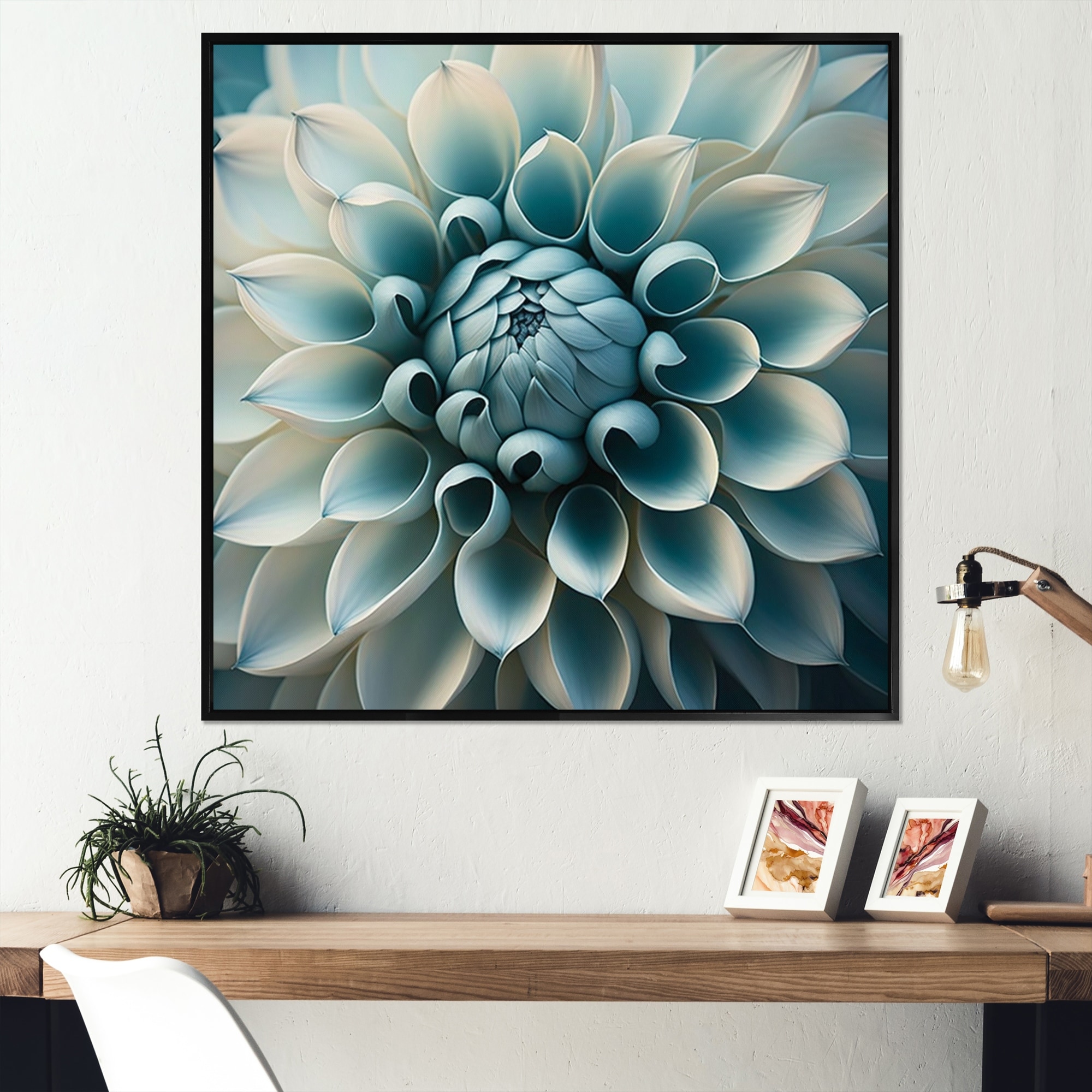 Designart "Blue And White Dahlia Flowers I" Floral Dahlia Framed Canvas Art Print
