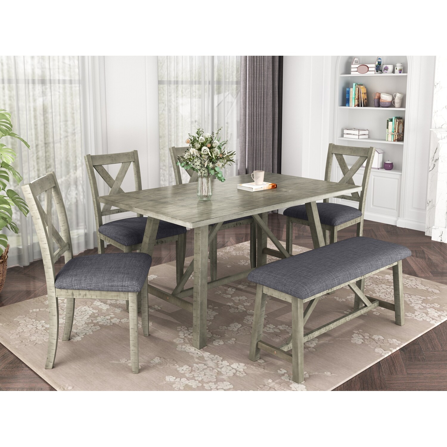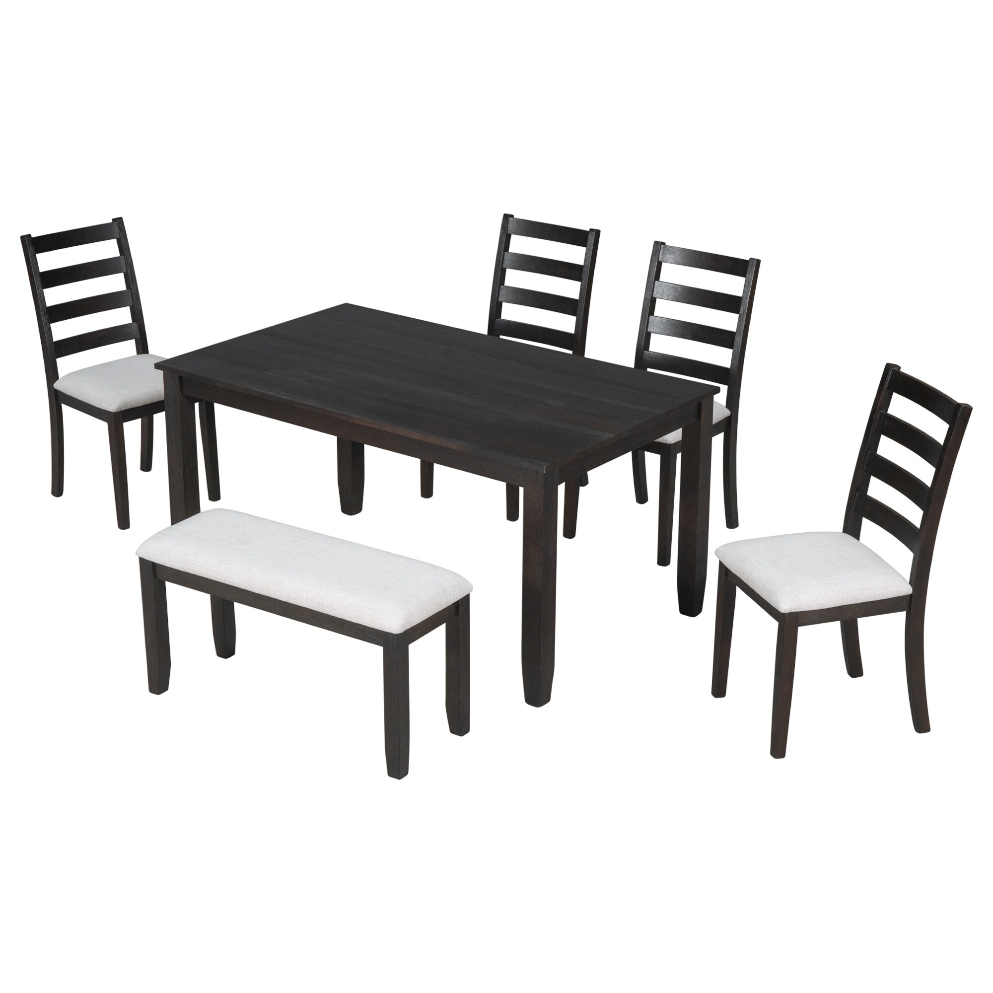 6-Piece Dining Room Table Set with 4 Chairs & a Bench