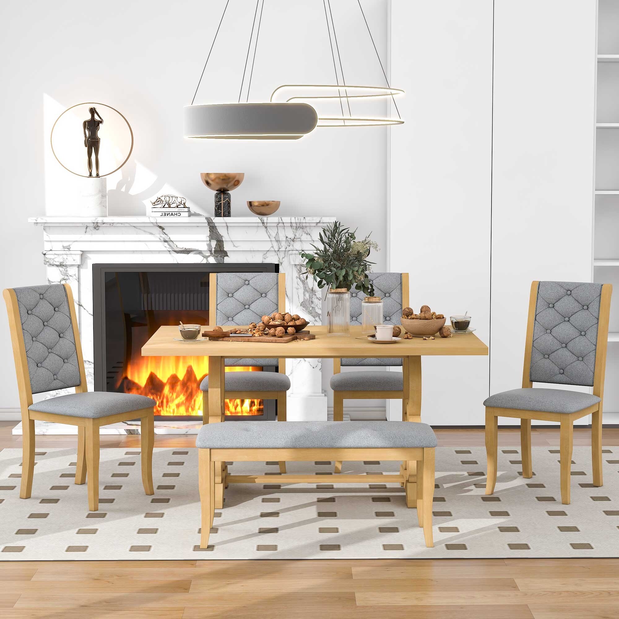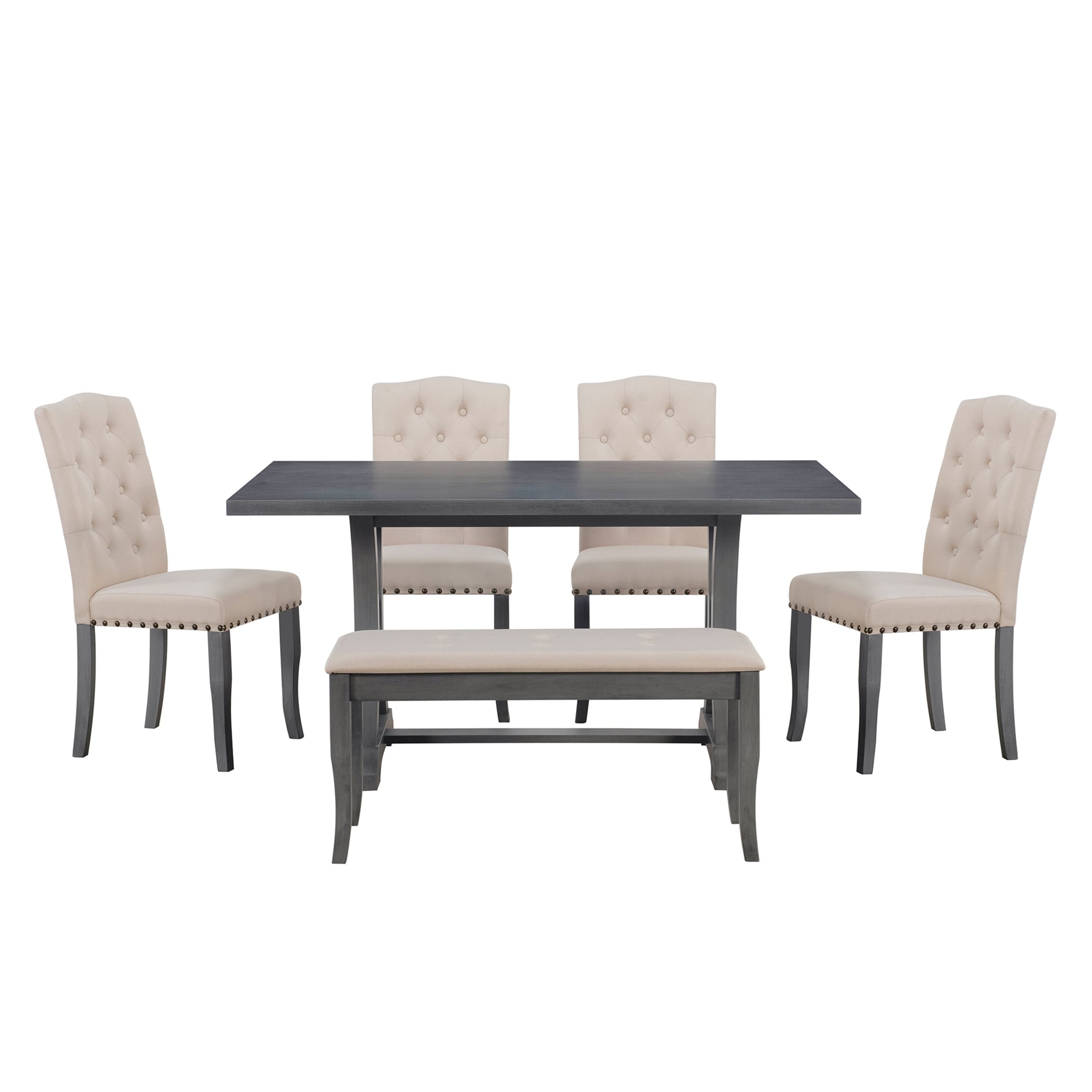 Vintage 6-Piece Dining Set with Rectangular Dining Table and Tufted Dining Chairs & Bench Seating for Dining Room