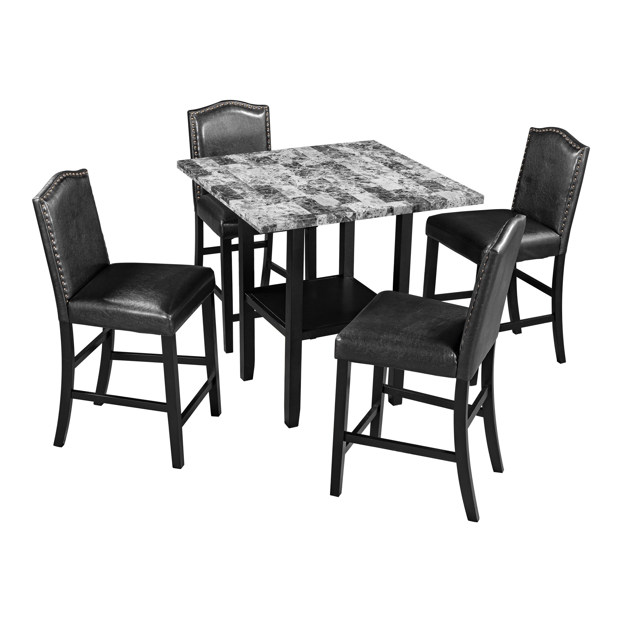 5 Pieces Farmhouse Dining Room Wooden Bar Table Set with 4 Chairs