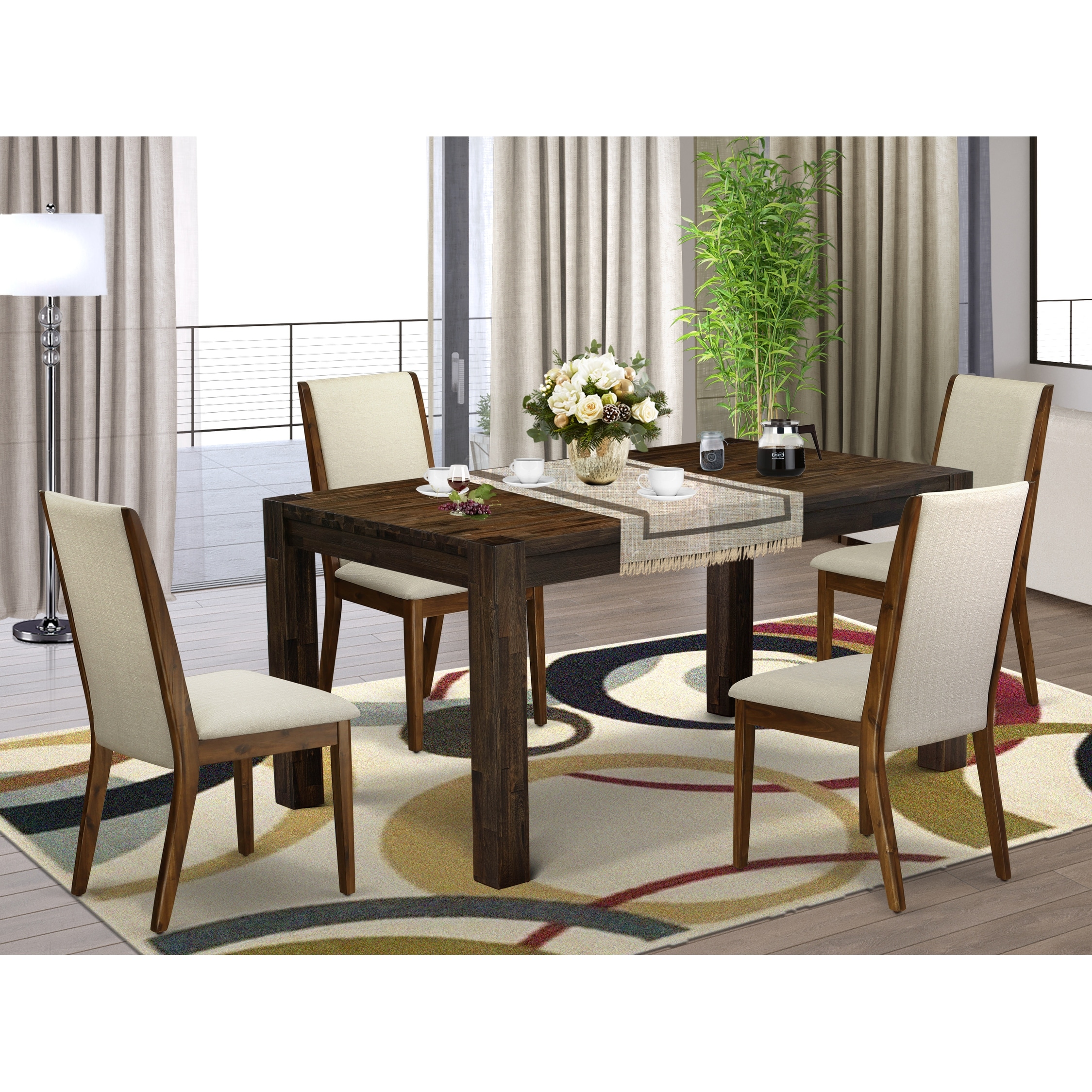 Modern Dining Set - Dining Room Table and Dining Chairs in Linen Fabric (Finish Option)