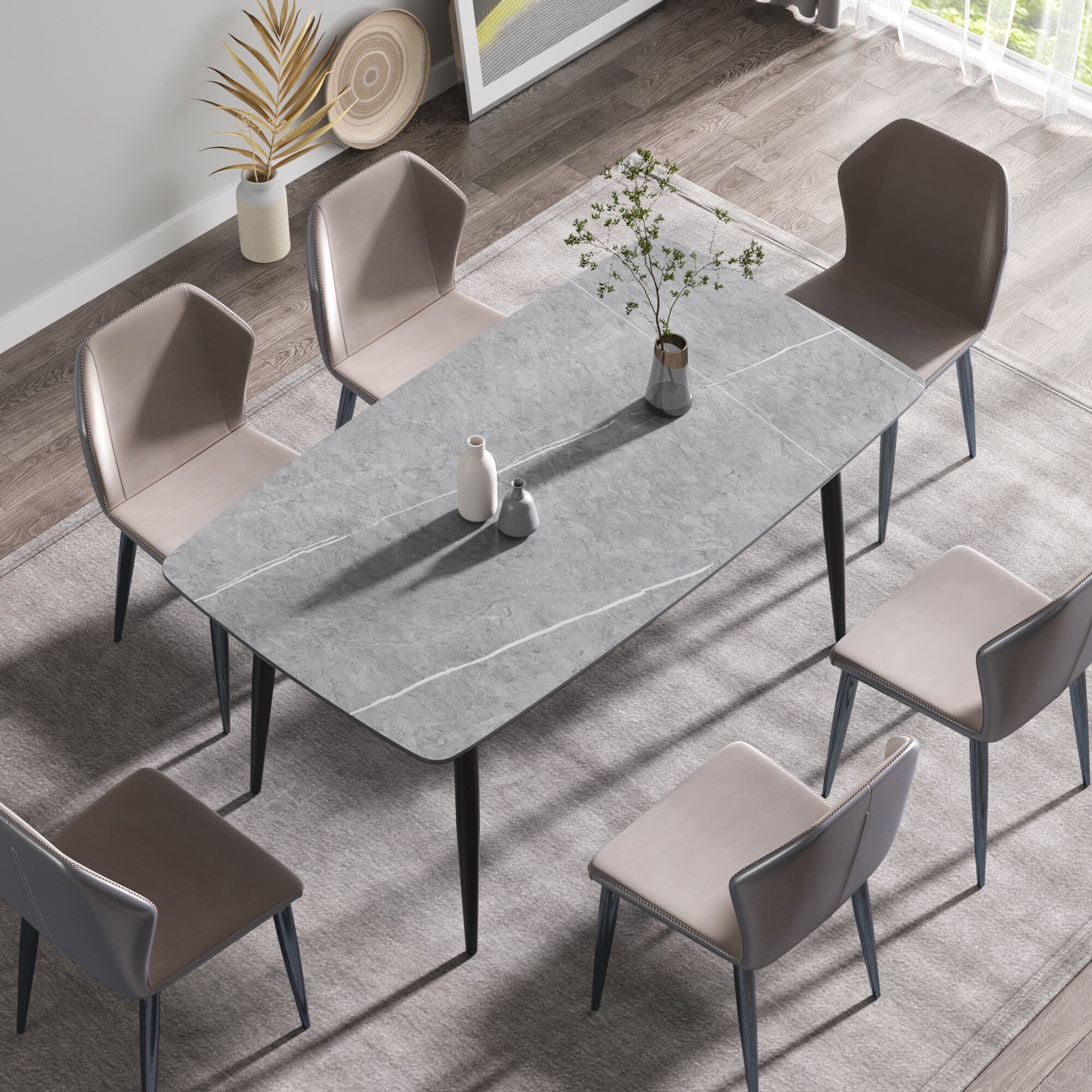 Modern Grey Marble Dining Table with Rectangular Tabletop for Kitchen and Dining Room