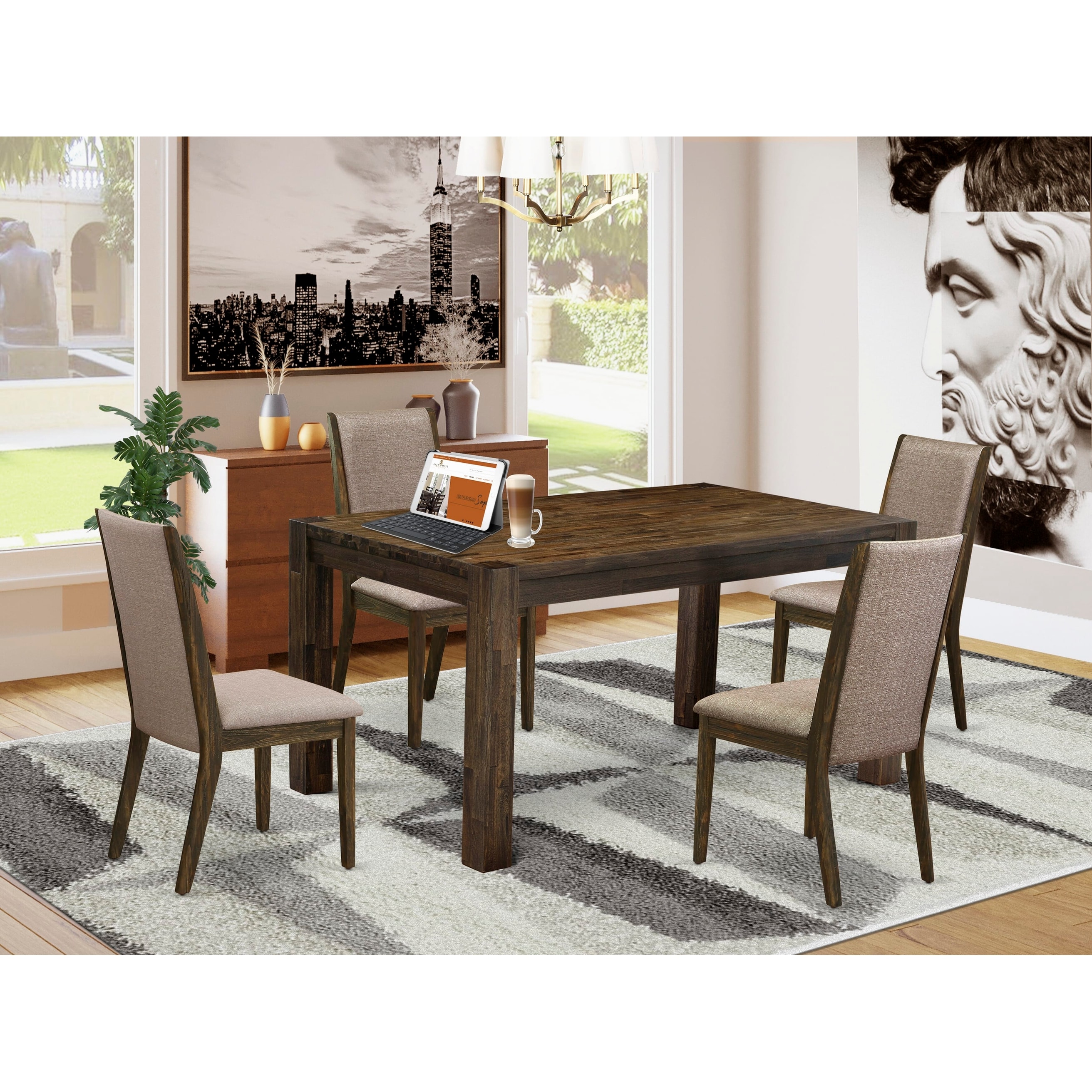 Dinette Set Contains a Dining Room Table and Linen Fabric Upholstered Parson Dining Chairs (Finish and Pieces Option)