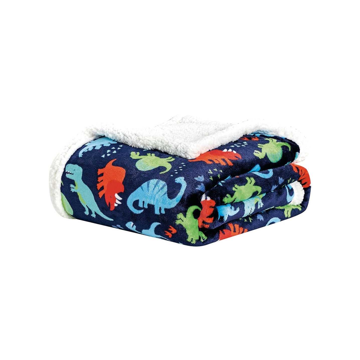 Dino Navy Sherpa 60"x50" Throw Blanket