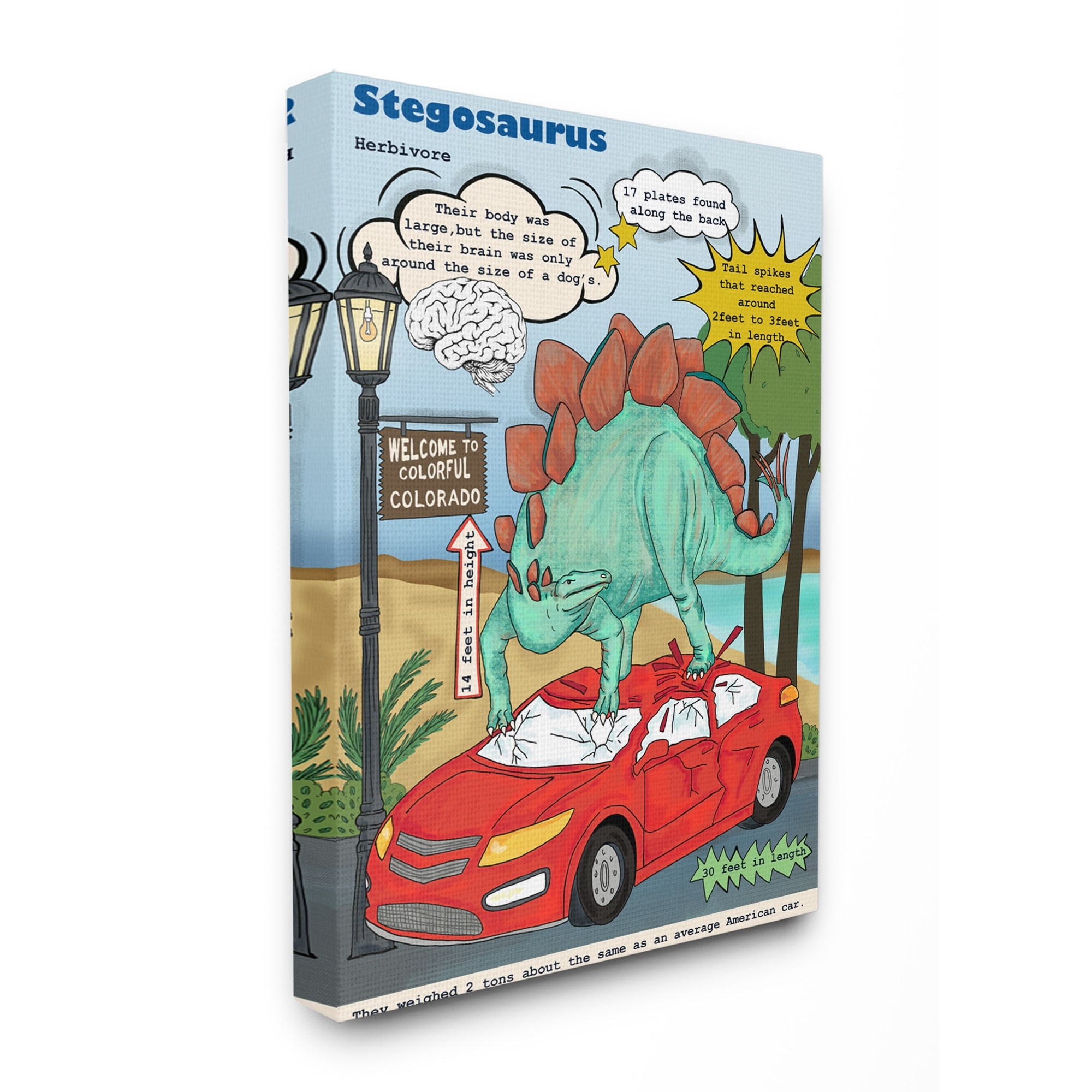 Stupell Fun Dinosaur Facts Stegosaurus Dino Scene Canvas Wall Art - Multi-Color