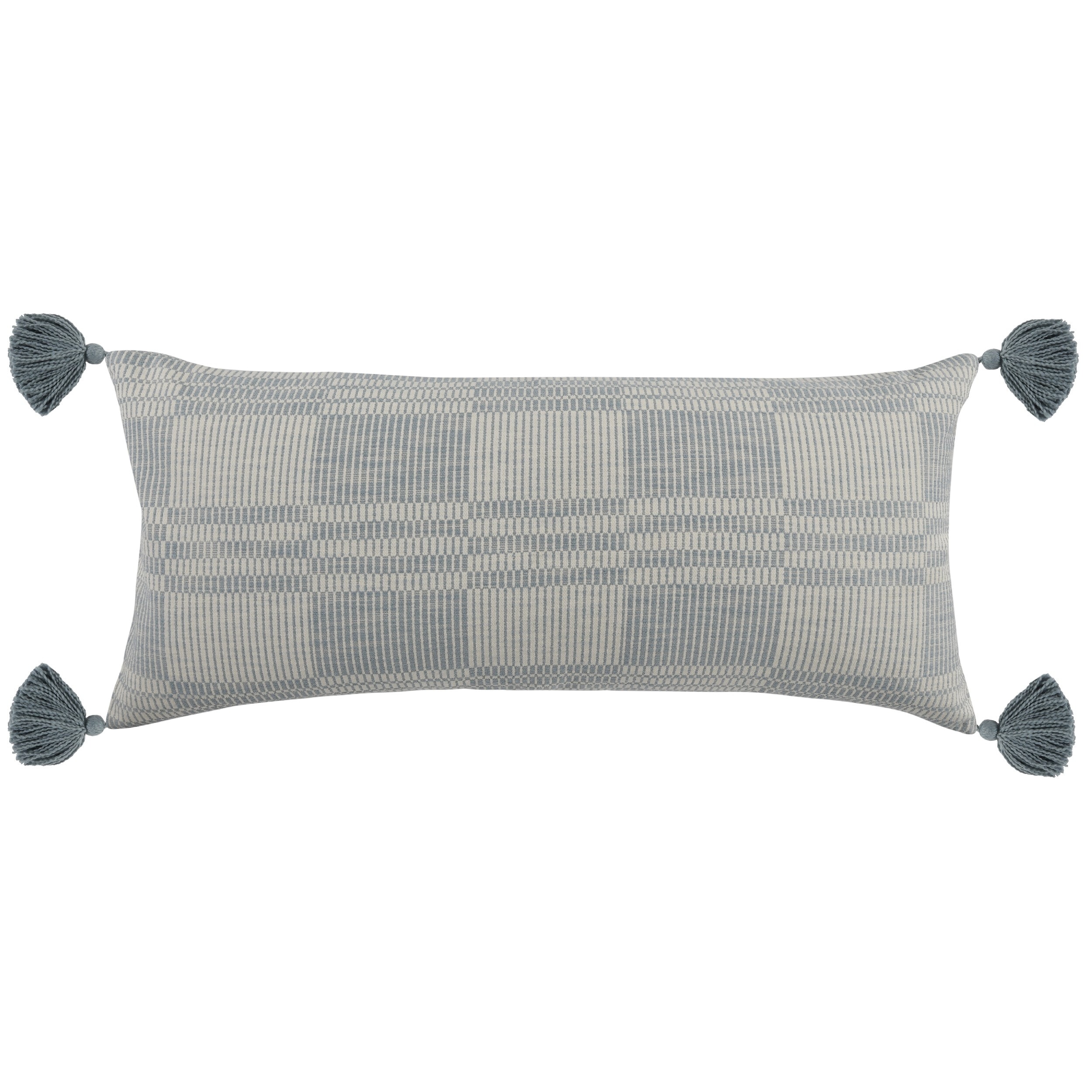 Drake 36 Inch Cotton Decorative Lumbar Throw Pillow, Plaid, Sandy Blue