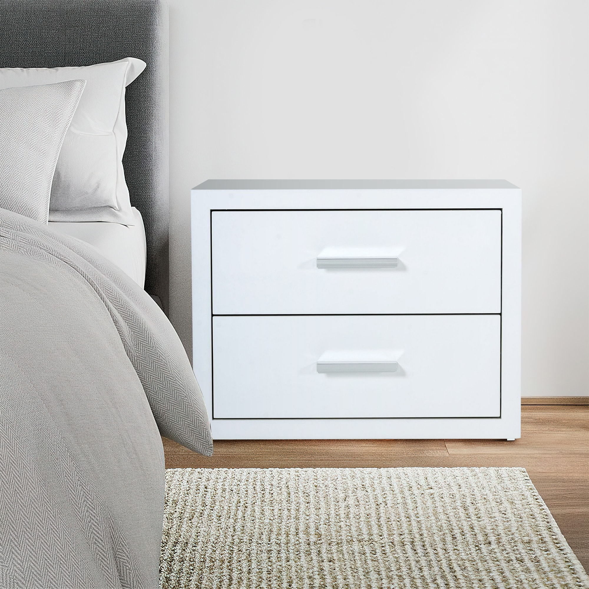 Cid 26 Inch Modern Nightstand, 2 Drawers, Glossy White