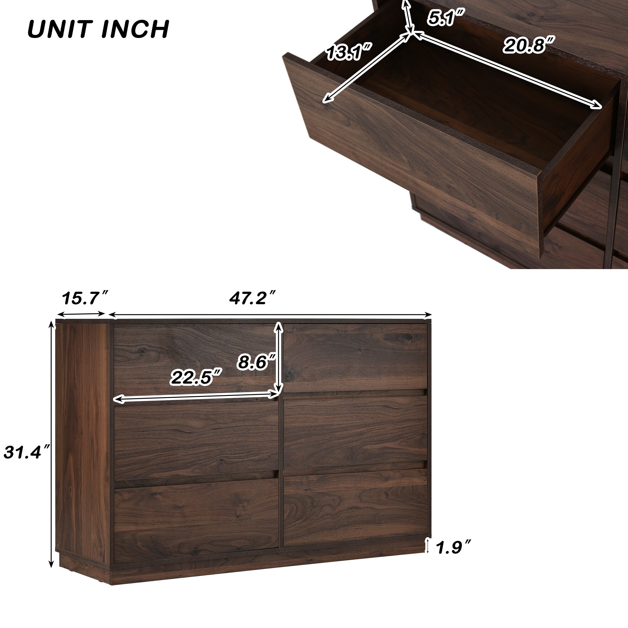(Preferred Choice Furniture) 6 Drawers Dresser; Dark Brown, Suitable for Bedroom, Living Room, Dining Room