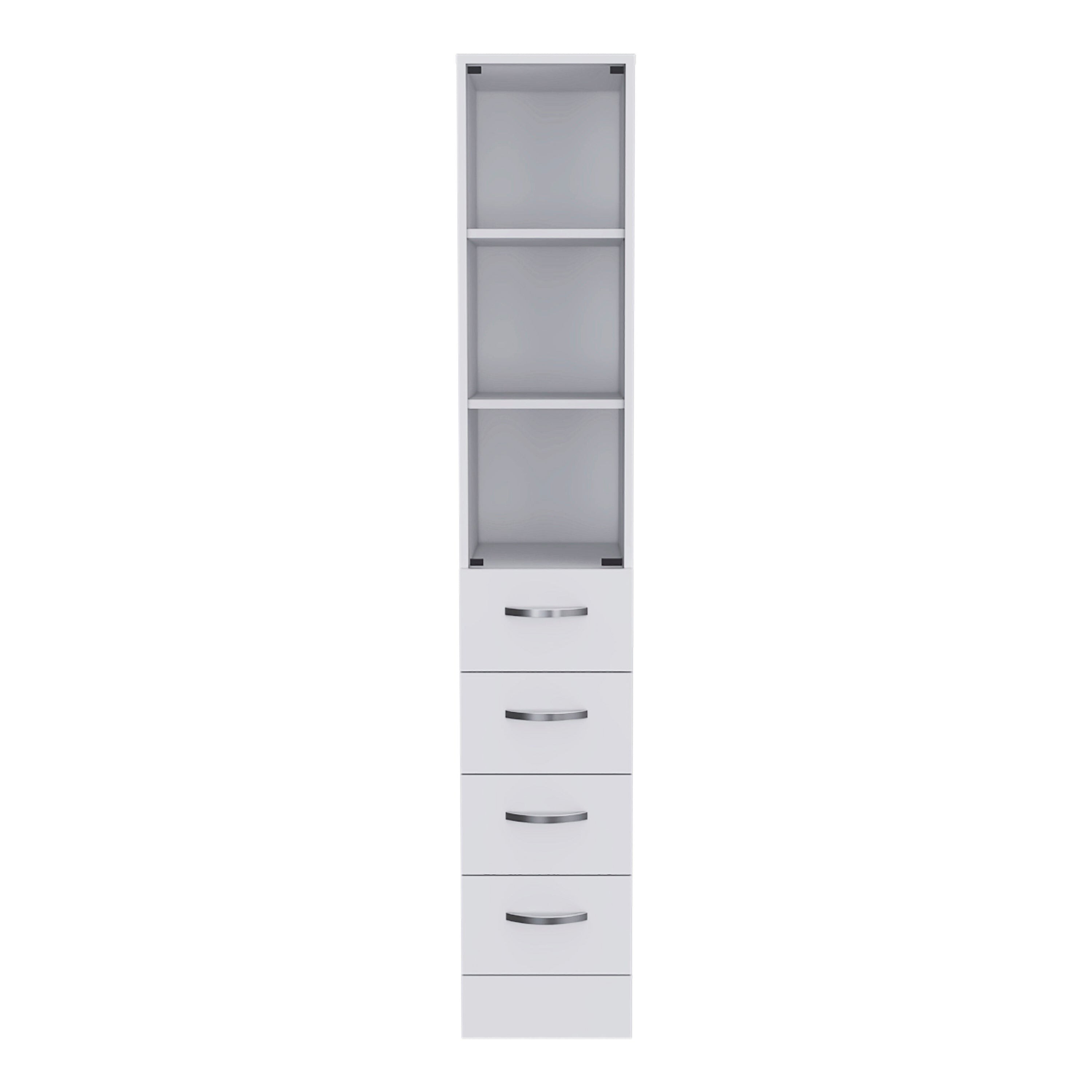 White Bathroom Storage Cabinet with Glass Door and Sliding Drawers - 68.29" X 11.97" X 17.56"