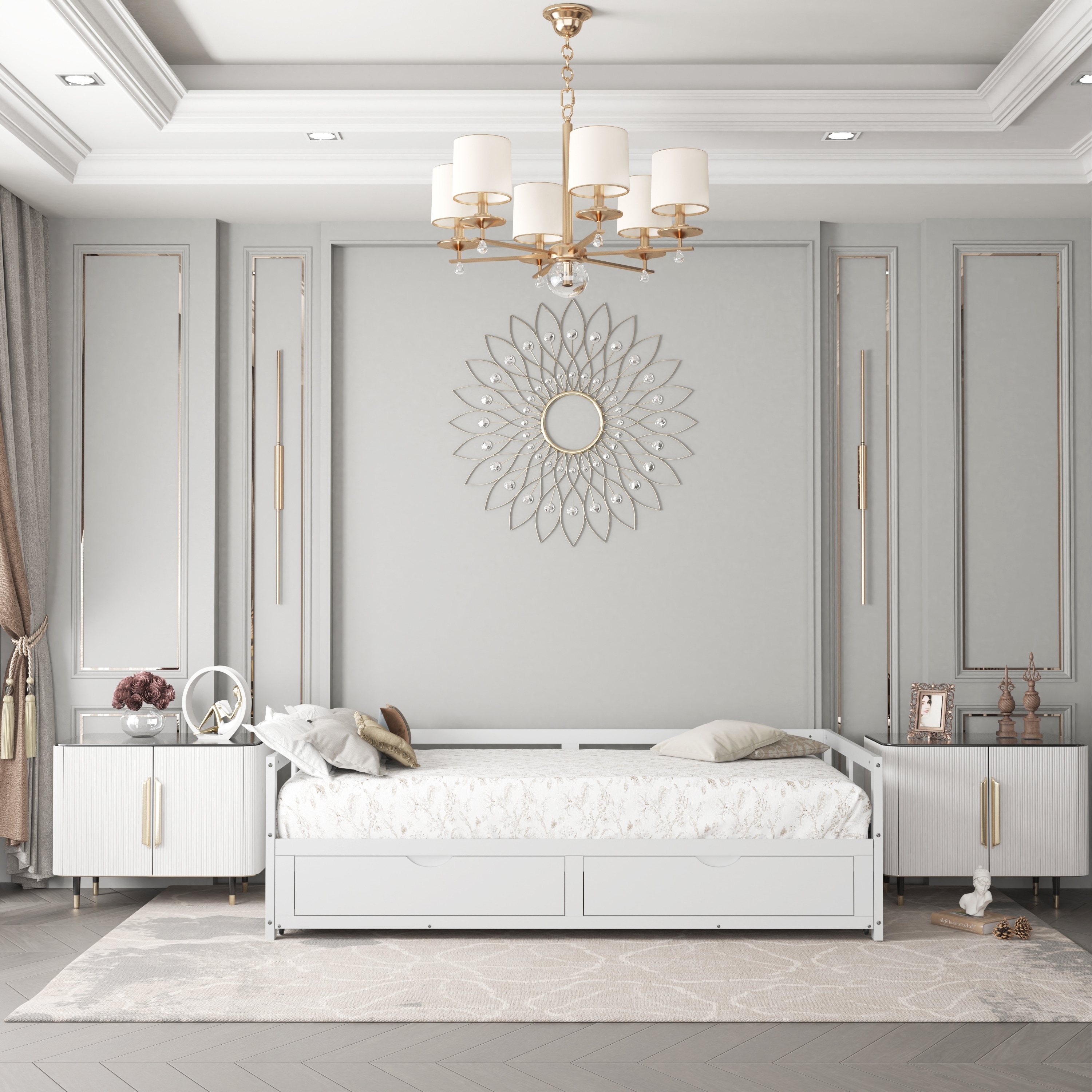Wooden Daybed with Trundle Bed and Two Storage Drawers